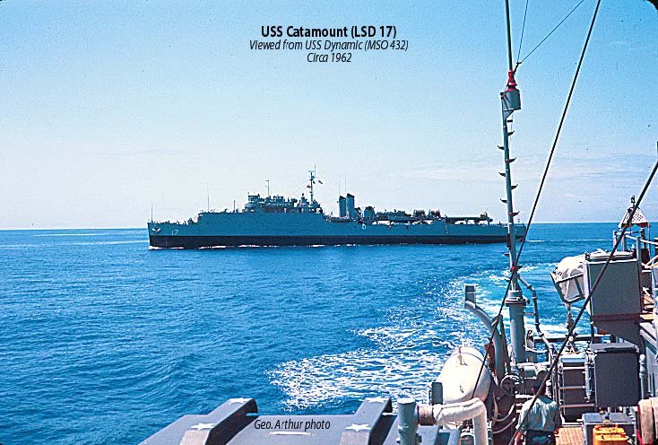 107k | USS Catamount (LSD-17) under way, circa 1962, location unknown. | Photo by George Arthur USS Dynamic (MSO-432), submitted by Floyd Farrar | |