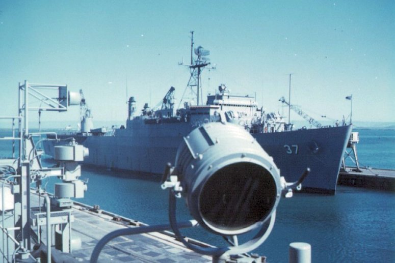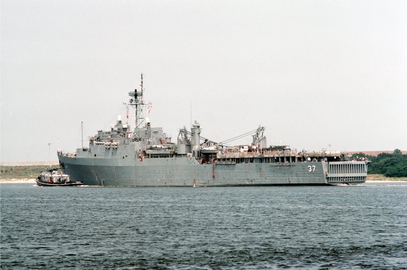 62k | USS Portland (LSD-37) pier side Little Creek Amphibious Base, summer 1992 | Photo by Adam Robison | |