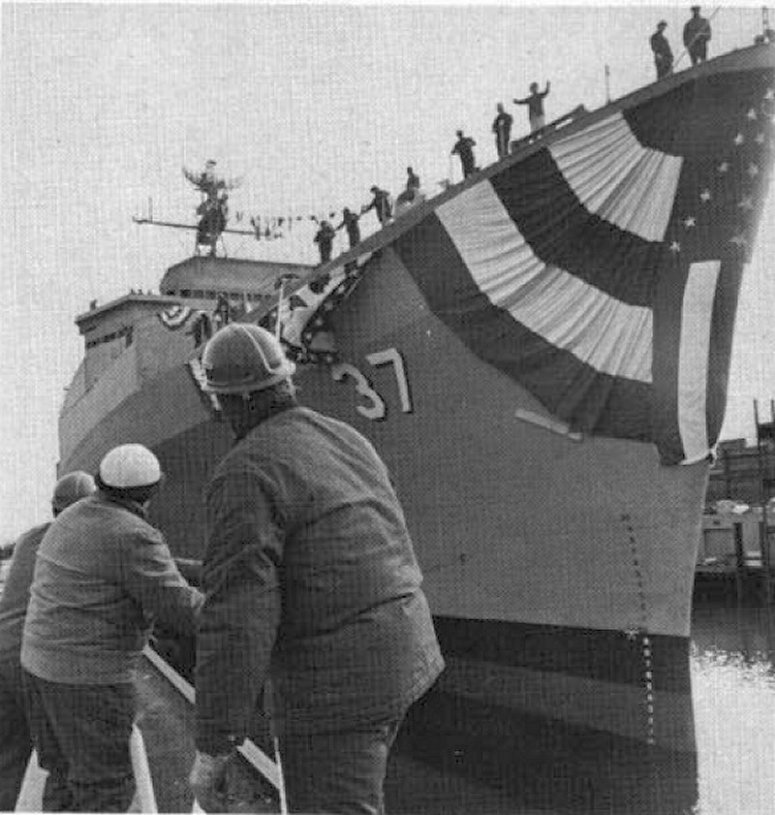 107k | Portland (LSD-37) launching, 5 May 1968, at General Dynamics Corp. Quincy, MA.. US Navy photo from "All Hands" magazine, October 1970. |