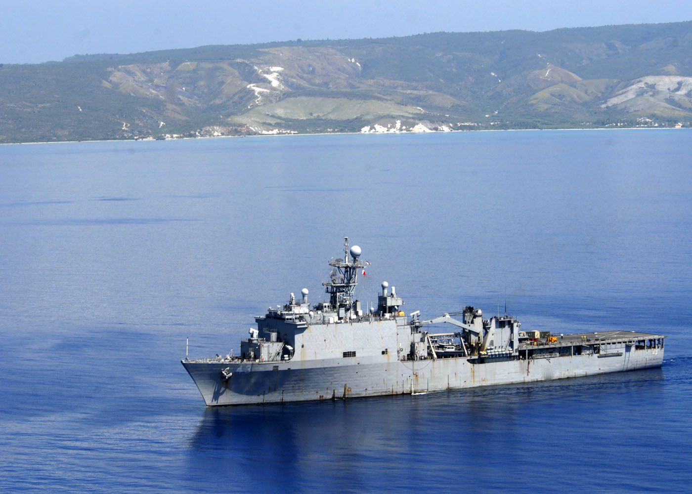 579k | USS Fort McHenry (LSD-43) conducts operations supporting Operation Unified Response off the coast of Haiti to provide humanitarian assistance following a 7.0 magnitude earthquake that devastated the island nation Jan. 12, 2010. US Navy photo # 100119-N-2000D-009 CARIBBEAN SEA (Jan. 19, 2010) by MC1 Hendrick L. Dickson. |