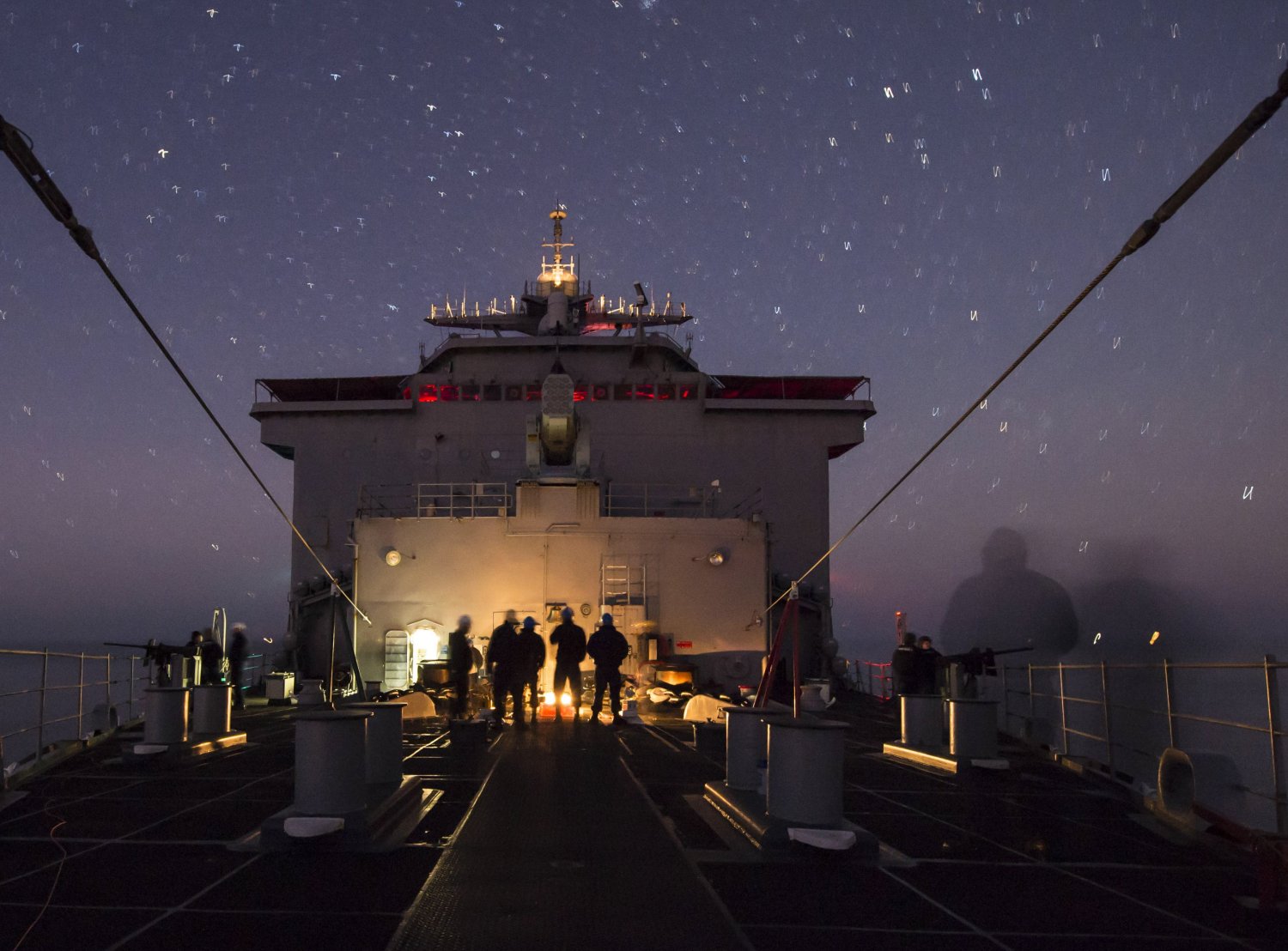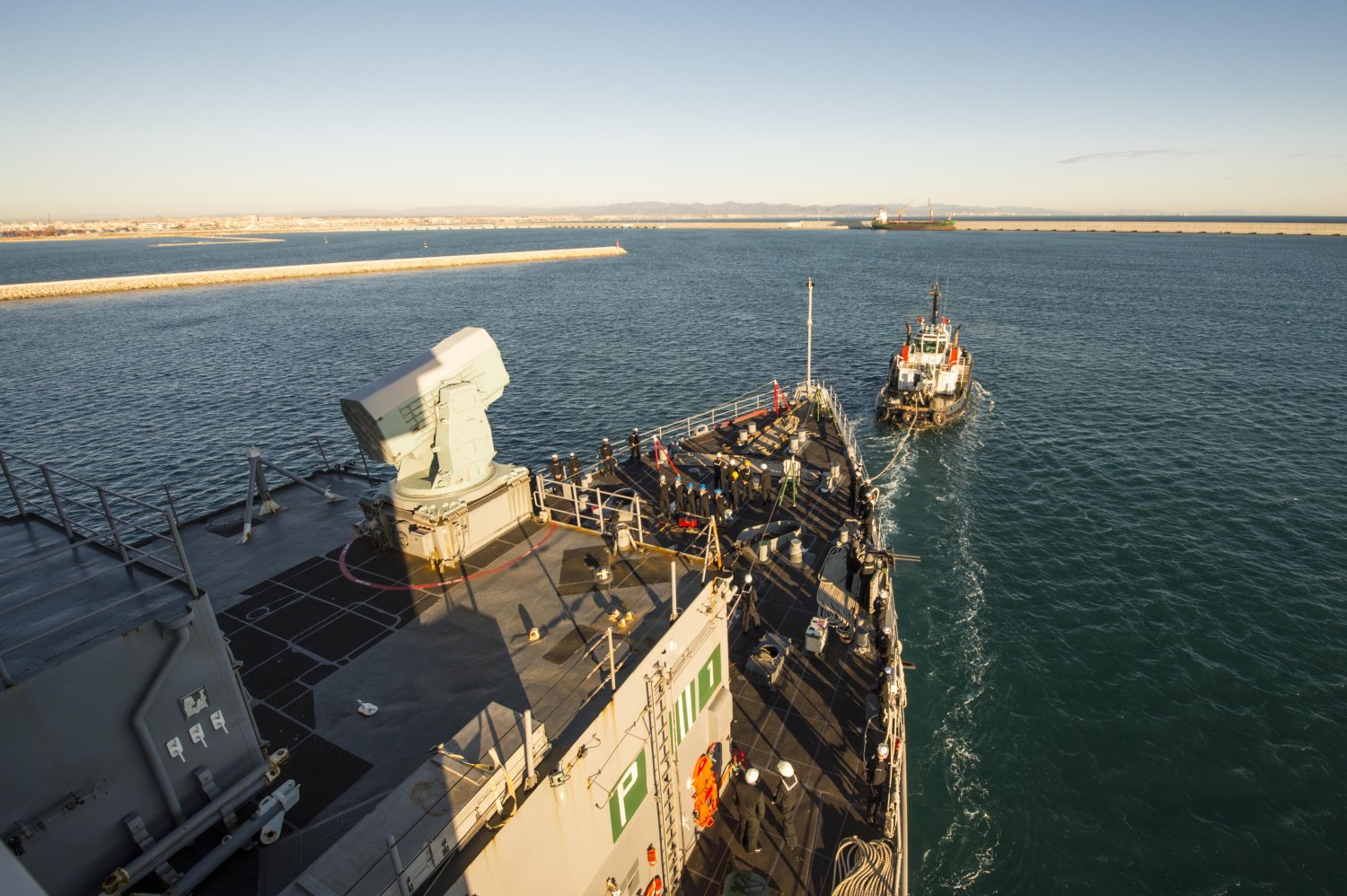 219k | Sailors aboard USS Fort McHenry (LSD-43) prepare the ship's forecastle for an eastbound transit of the Strait of Gibraltar. Fort McHenry, part of the Iwo Jima Amphibious Ready Group is conducting naval operations in the U.S. 6th Fleet area of responsibility in support of U.S. national security interests in Europe. US Navy photo # 141226-N-DQ840-003 STRAIT OF GIBRALTAR (Dec. 26, 2014) by MC3 Adam Austin. |