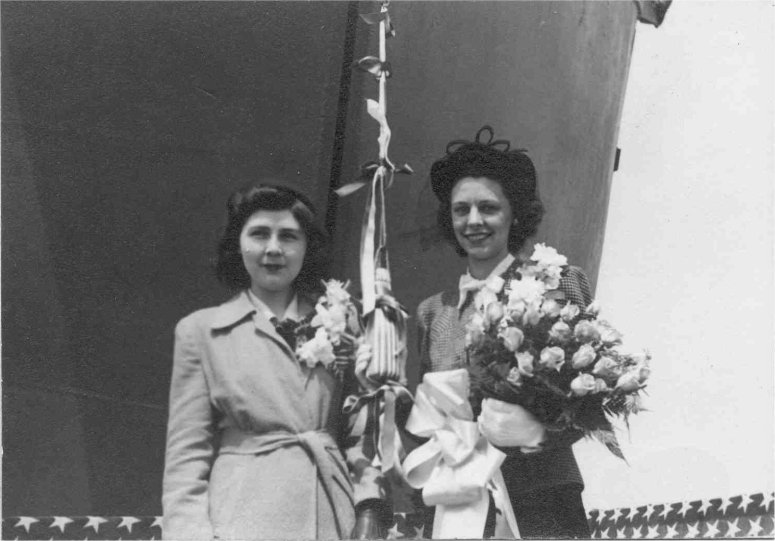 64k | USS LSM-208 launching ceremony, 10 May 1944, at Dravo Corporation, Wilmington, DE. Mrs. Elizabeth W. (George H.) Ritter on the right, lady on the left is unidentified. | Photo by LCDR George H. Ritter, USNR | |