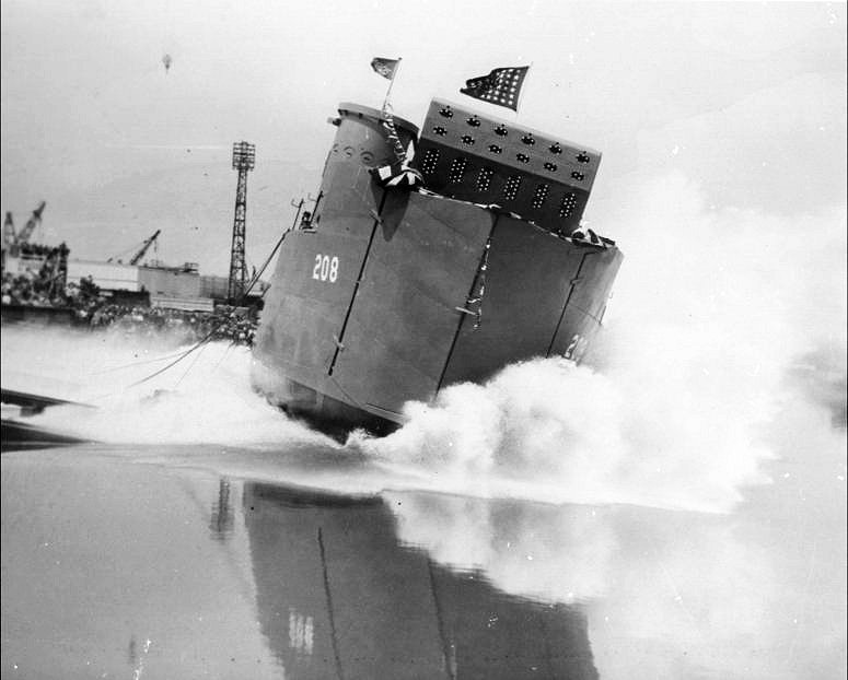 55k | USS LSM-208 side launching at Dravo Corporation, Wilmington, DE., 10 May 1944. | USS LSM / LSMR Association | |