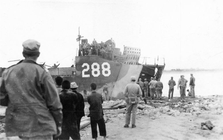 58k | USS LSM-288 beached at Taku, China, September 1945. Photo by Bill Talarico USS LSM-288 |