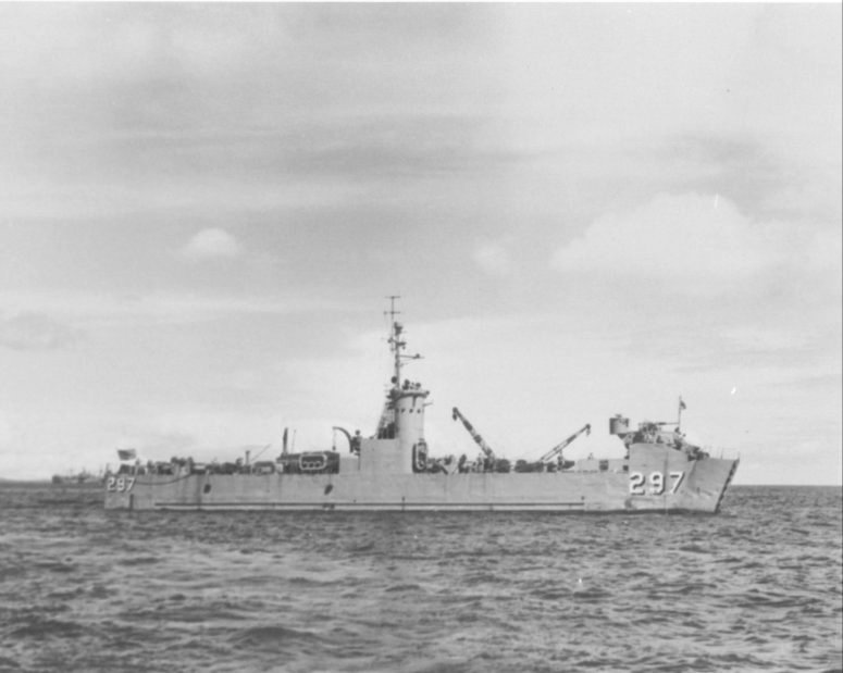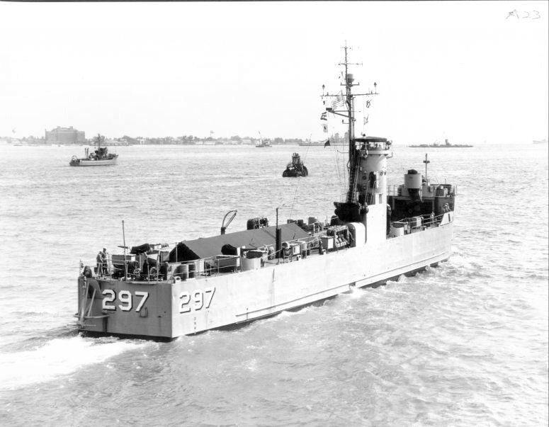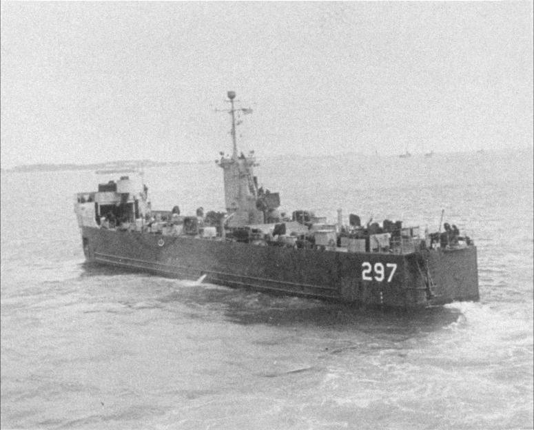 75k | USS LSM-297 under way, date and location unknown. | Bill Brinkley and the USS LSM / LSMR Association | |