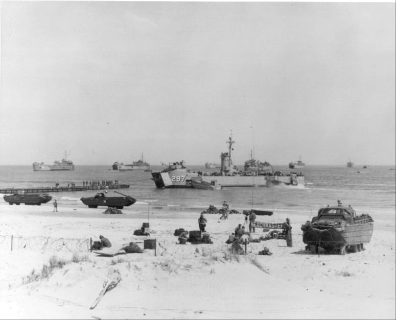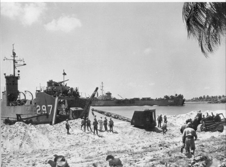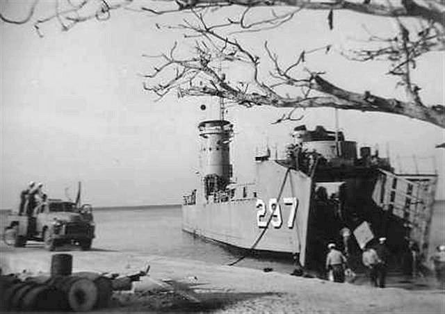 81k | USS LSM-297 and USS LST-1041 beached while unloading equipment, date and location unknown. | USS LSM / LSMR Association | |