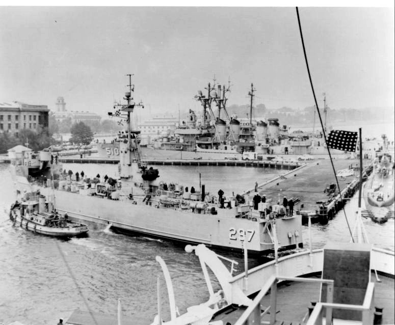 85k | USS LSM-297 approaching the dock at the US Naval Academy, Annapolis, MD., 10 October 1952. Other ships present include USS Eaton (DD-510), USS Beal (DD-471) and USS Diablo (SS-469). | USS LSM / LSMR Association | |
