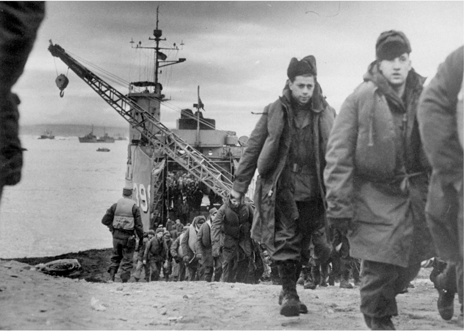 251k | U.S. Army Engineers disembarking from USS LSM-398 at Greenland in October 1952.