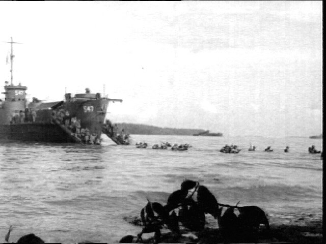 51k | USS LCI(L)-547 landing troops at Morotai, 15 September 1944. US National Archives image. |
