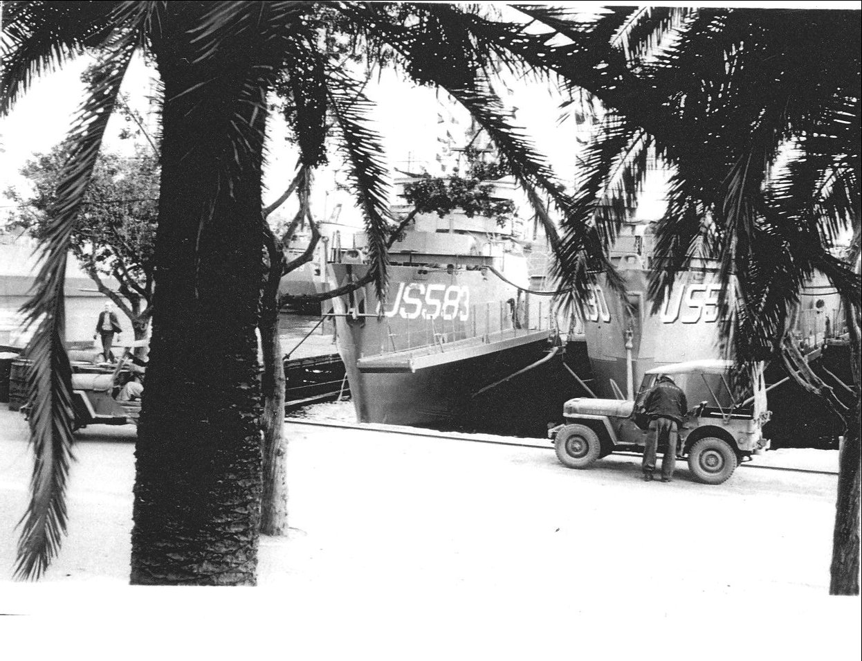 286k | USS LCI(L)-583 and USS LCI(L)-530 moored at Bizerte, Tunisia, circa May 1944. | Photo by Robert W. Van Keuren CO USS LCI(L)-665 | |
