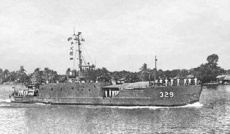 Ex-LCI(L)-872 underway while in South Vietnamese service as RVNS Thien Kich (HQ-329), date and location unknown. |