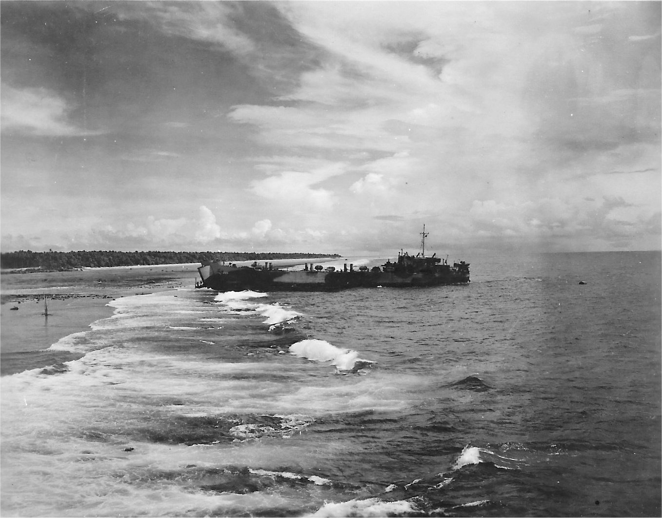 312k | USS LST-205 beached on a reef along with two another LST during landing operations on Saipan, Marianas Islands, 21 June 21 1944,