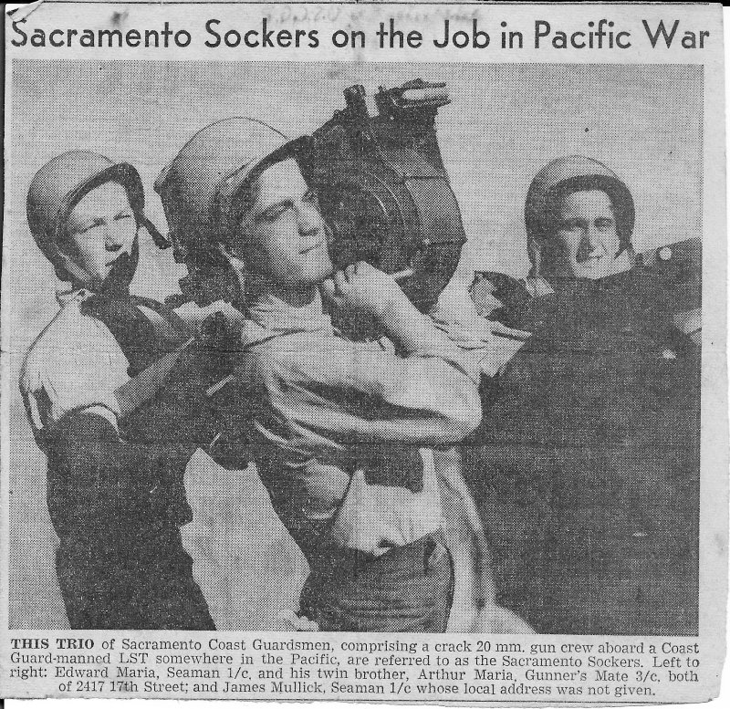 268k | Sacramento Bee newspaper photo, date unknown of local sailors serving in USS LST-205. | Lorne Mullick | |