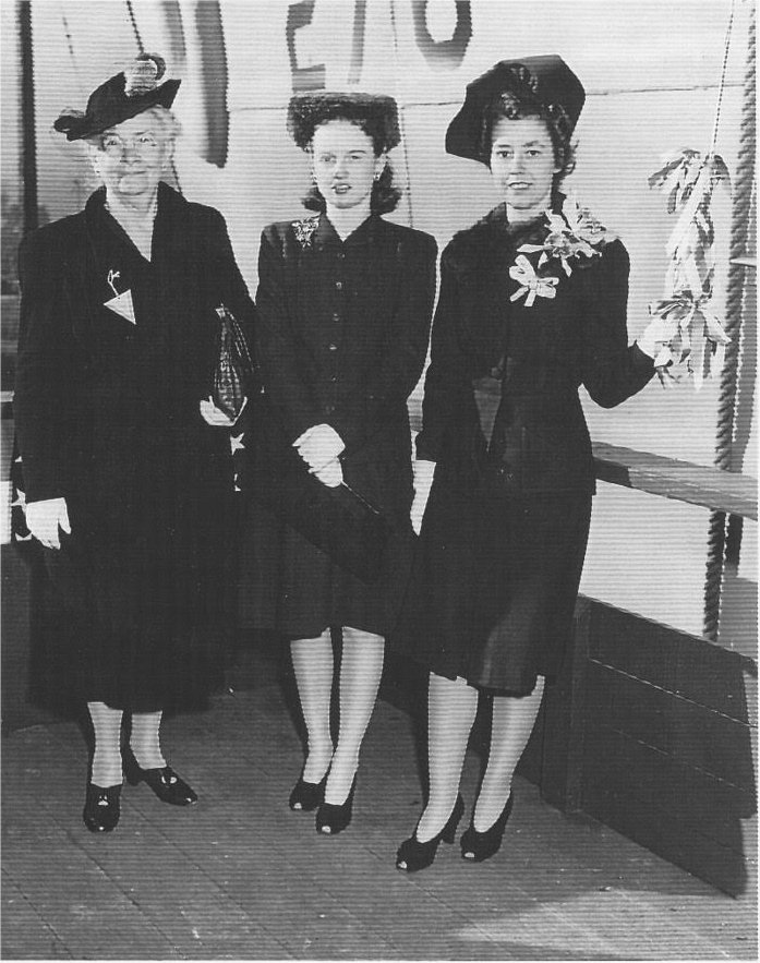 121k | LST-278 sponsor Mrs R.P. Dickinson Jr on the right, at left her mother-in- law Mrs R.P. Dickinson Sr, middle Mrs Dickinson Sr's. daughter Mrs Joe Baker, 16 June 1943, at American Bridge Co., Ambridge, PA. | Dennis Mierzwa | |