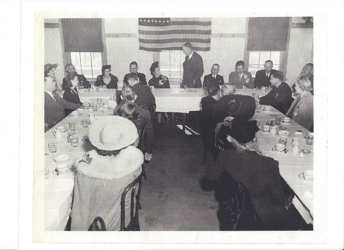 129k | Luncheon served to the launch party, 16 June 1943, at American Bridge Co., Ambridge, PA. Mrs. R.P. Dickinson Jr. is in center under the flag | Dennis Mierzwa | |