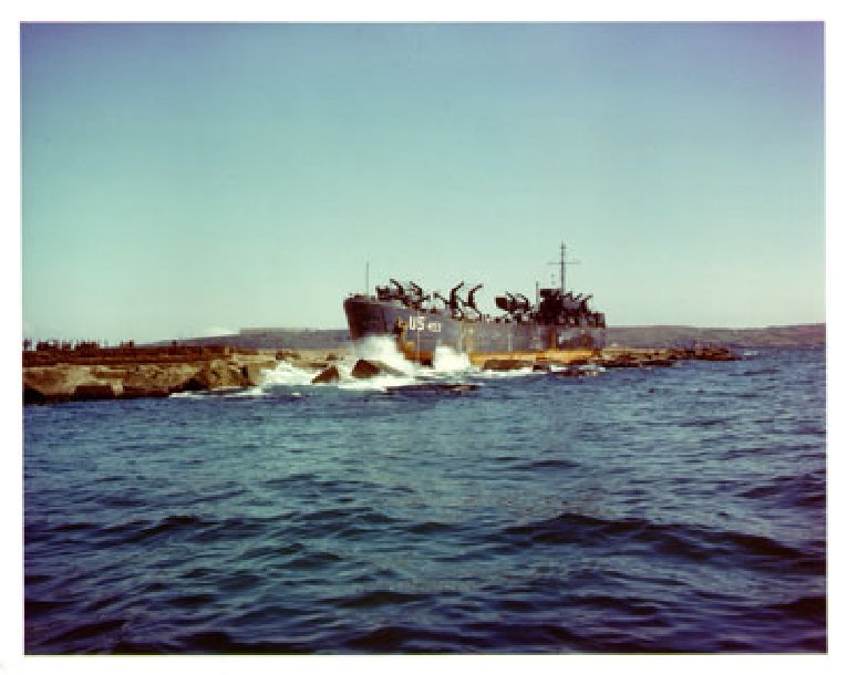 USS LST-493 off loading at Normandy, circa 7 June 1944 to 9 April 1945 |