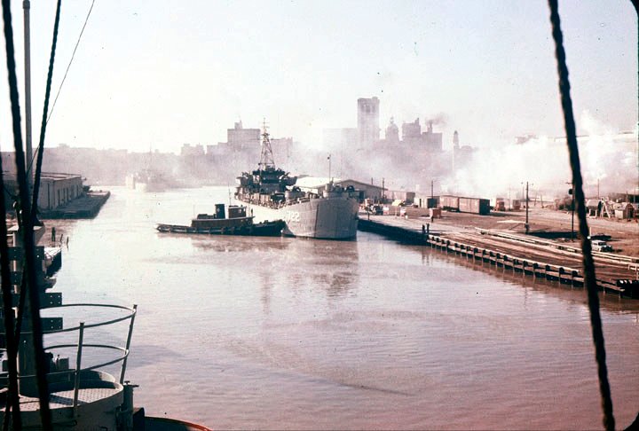 85k | USS Dodge County (LST-722) arrives at Savannah, GA. to off-load 1st Armored Division during the Cuban Missile Crisis, in October 1962. Photo taken from USS Duval County (LST-758). | William W. Maki ETR2 | |