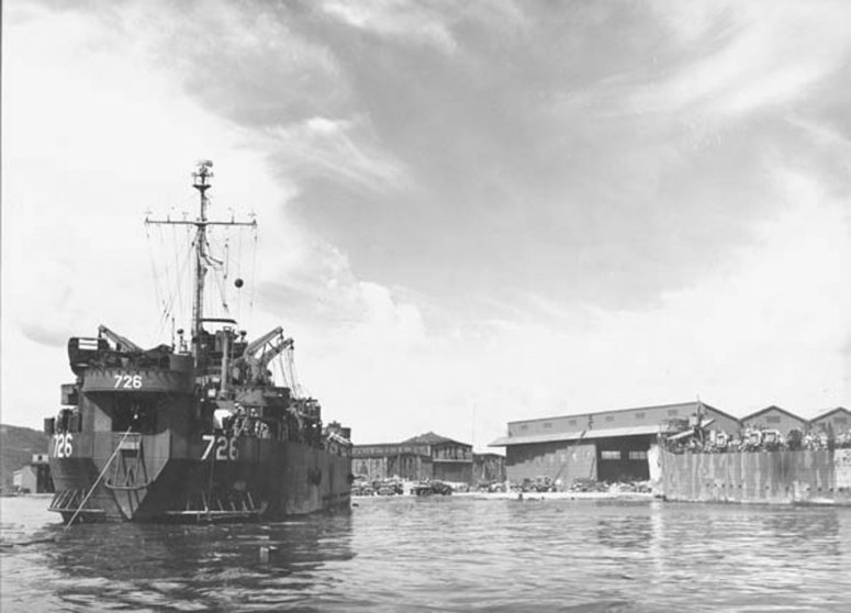 USS LST-817 at Apra Harbor, Guam, 1945.