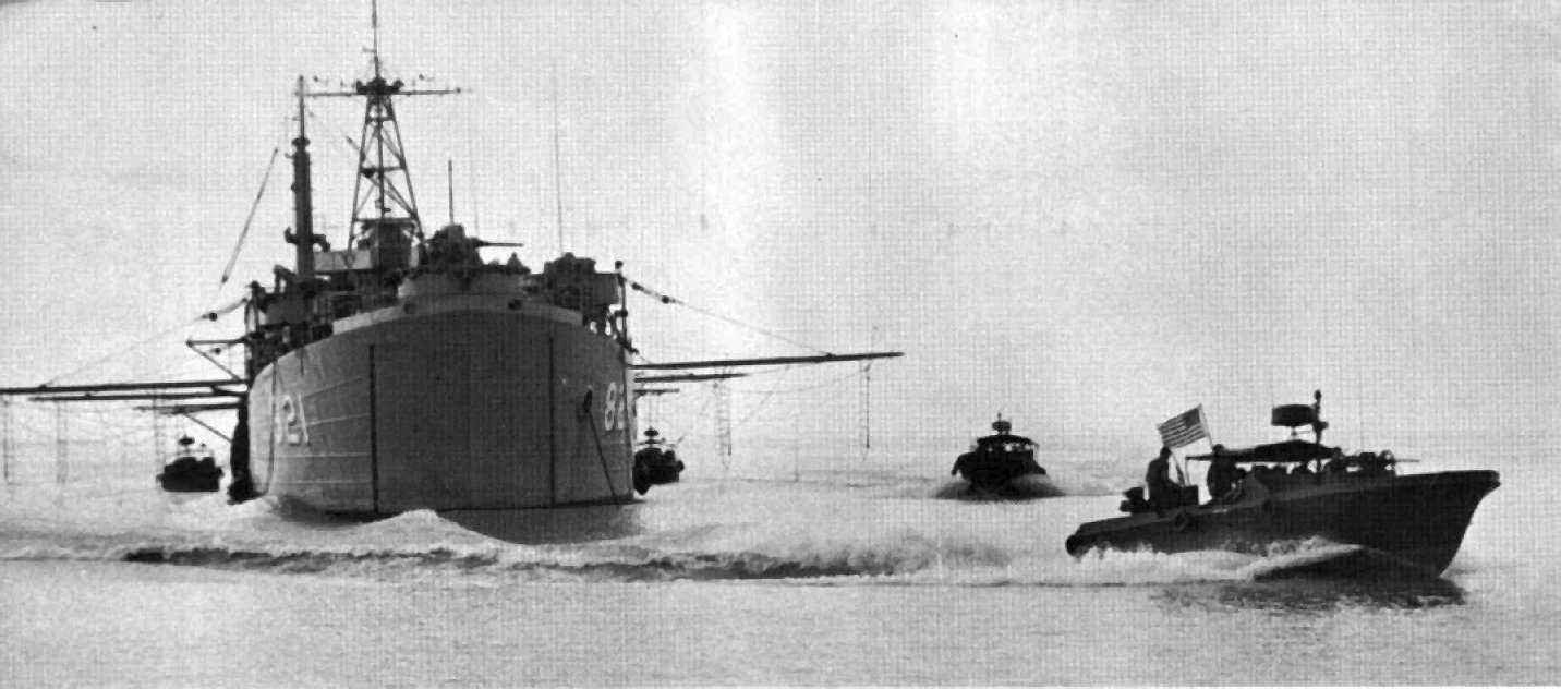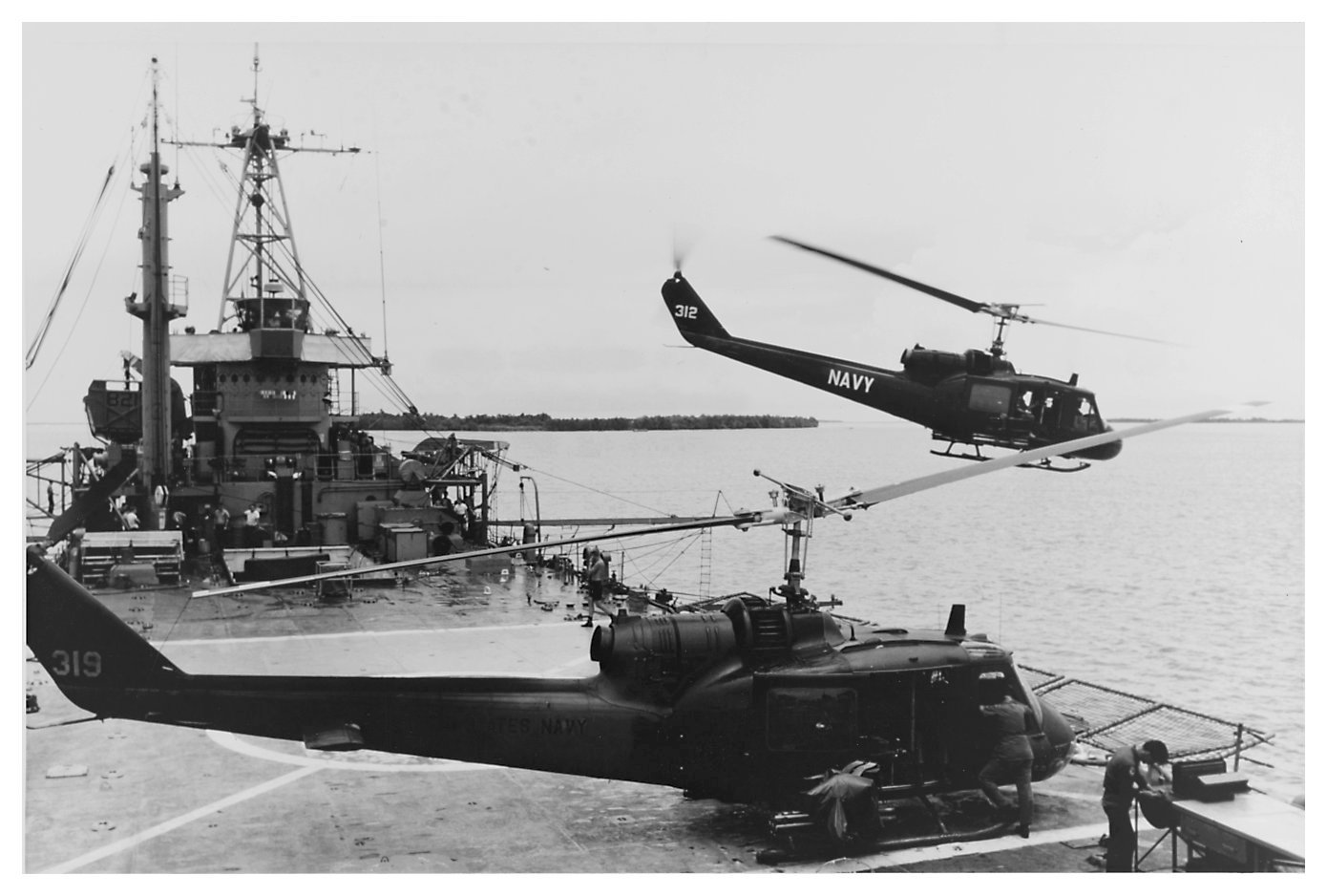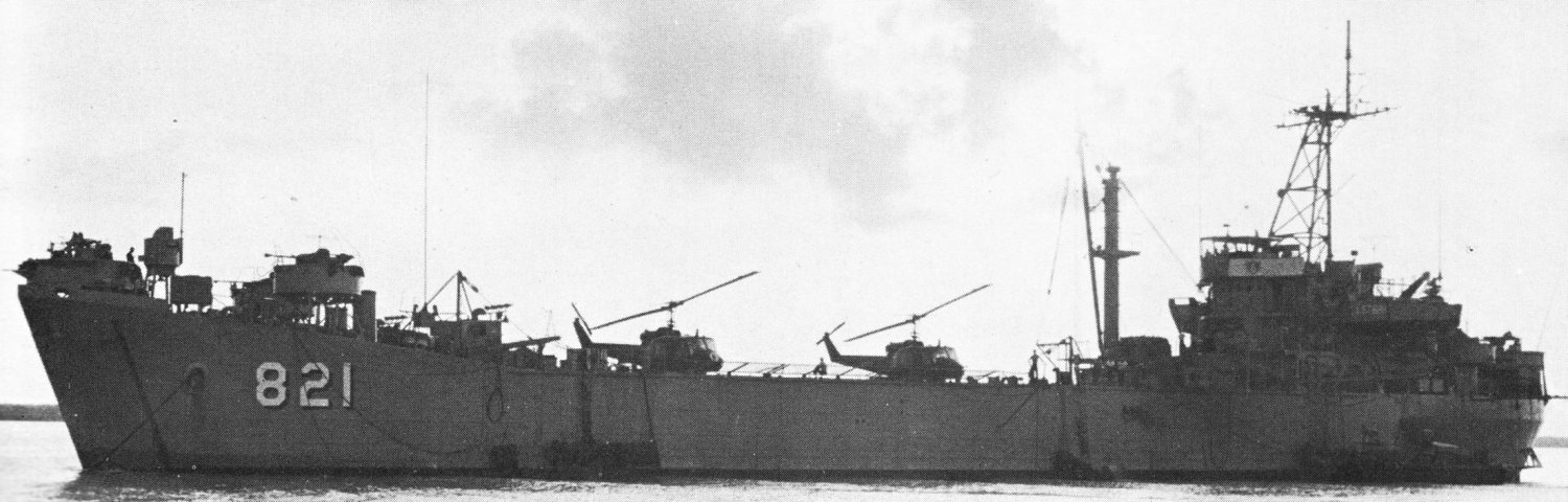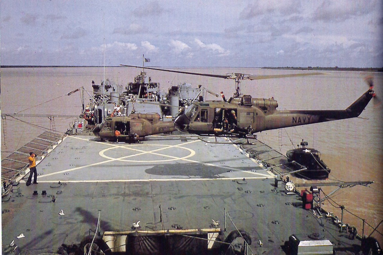 54k | USS Harnett County (LST-821) was home to the Navy Seawolf UH-1B gunships of
