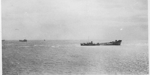 34k | USS LST-884 lays abandoned after being hit by a Japanese kamikaze attack off Okinawa, 1 April 1945. | Allen Pike, Courtesy Joseph LaGeorge USS APB-44 | |