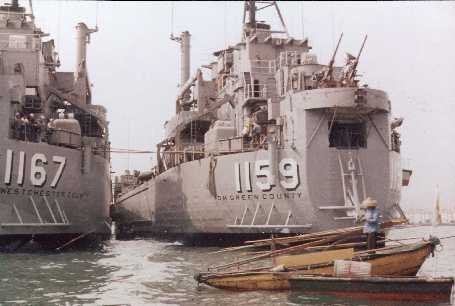 29k | USS Tom Green County (LST-1159) and USS Westchester County (LST-1167), circa May 1960-December 1962, Hong Kong. | Courtesy Jim Harp via Ed Lange LST-1159 Web Site |