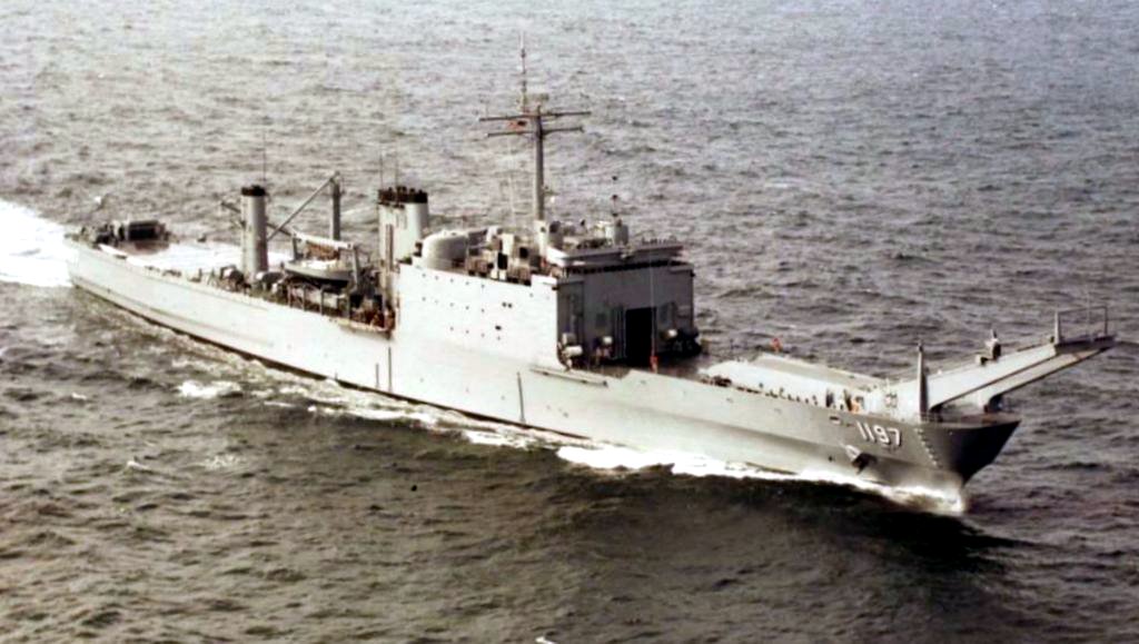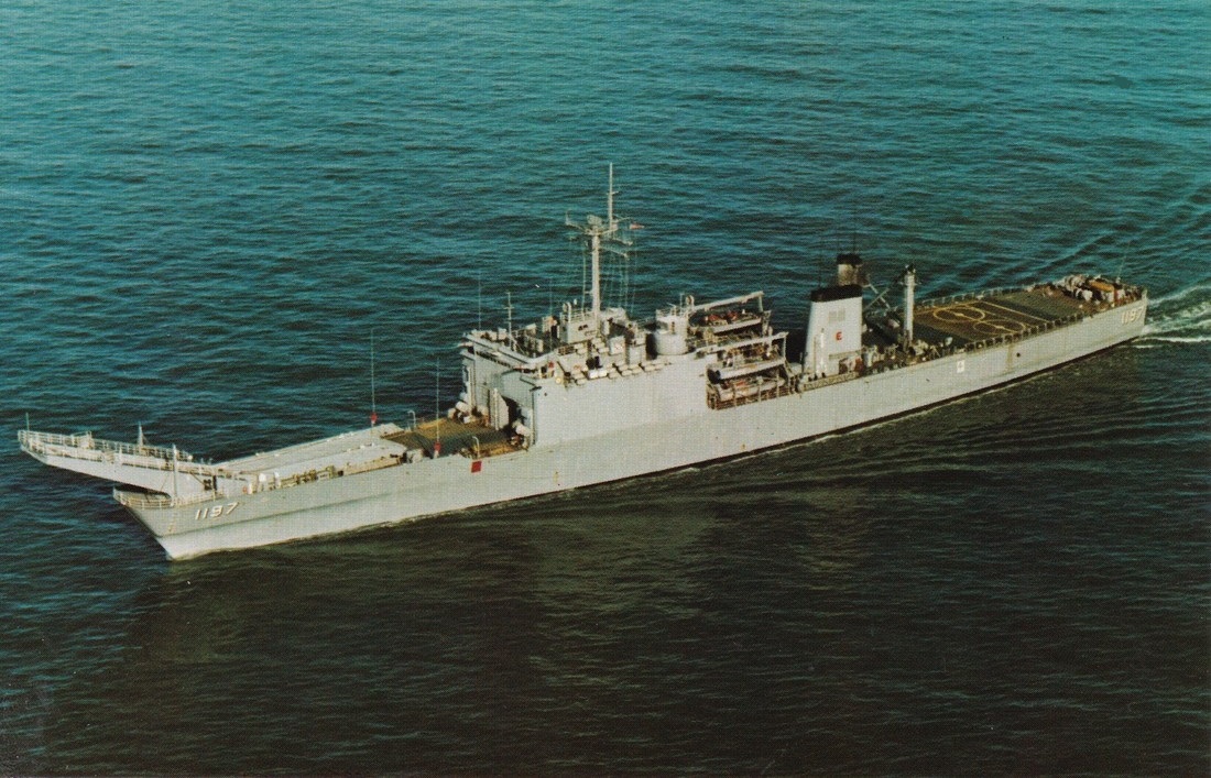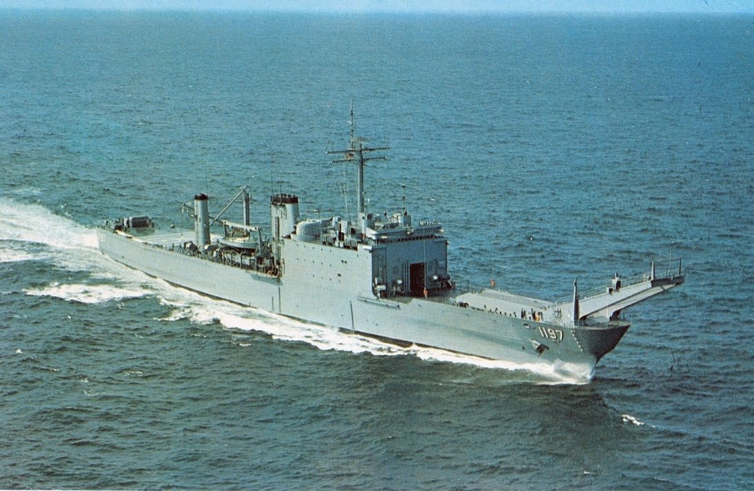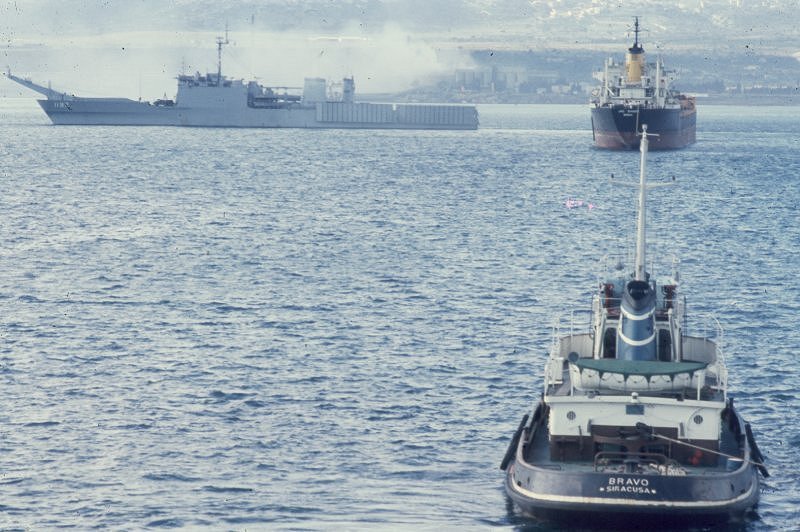 108k | USS Barnstable County (LST-1197) at Augusta Bay, Sicily, circa 30 January 1976. | © Richard Leonhardt | |