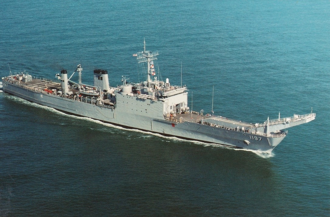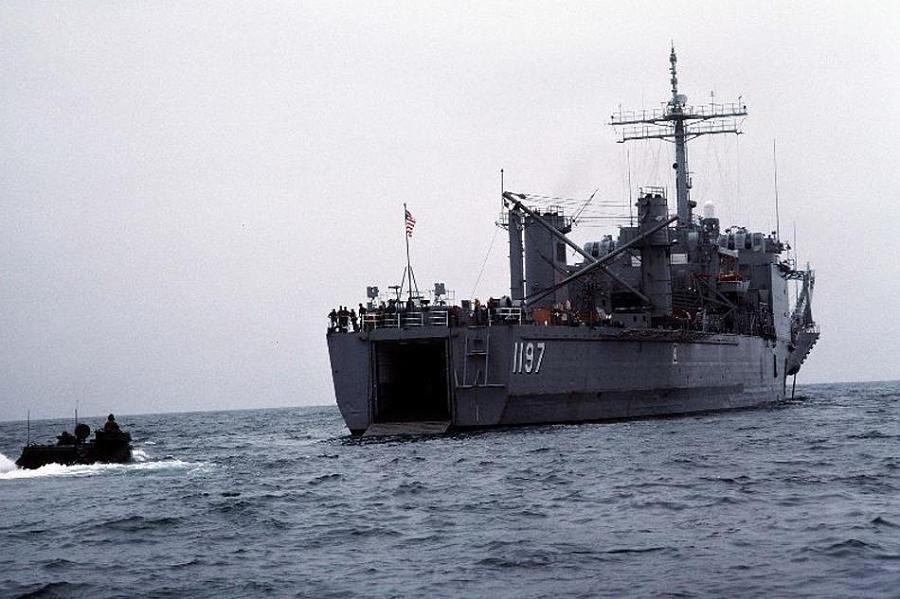 75k | USS Barnstable County (LST-1197) conducting amphibious operations, date an location unknown. US Navy photo. |