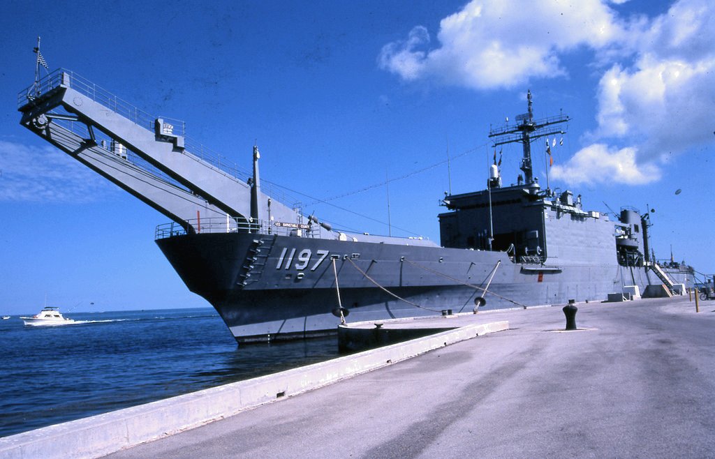 125k | USS Barnstable County (LST-1197) moored pierside at Key West, FL. Photo by Ray Blazevic. Image from Flickr courtesy of Florida Keys Public Libraries photo # MM00040116x. |