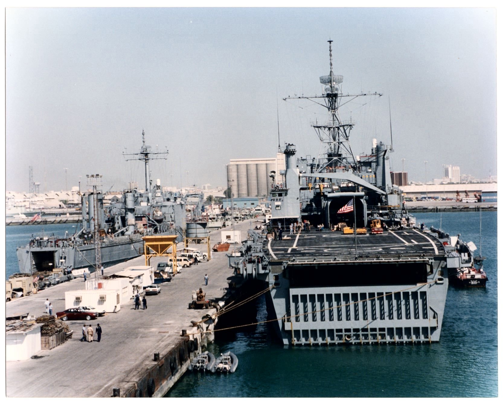 21k | USS Barnstable County (LST-1197) underway in mid-Atlantic Ocean 1993, trailing USS Wasp (LHD-1) and USS El Paso (LKA-117) | A. Freudig | |