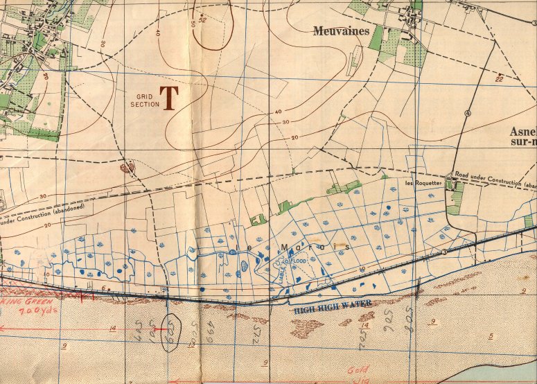 154k | Chart of Gold Beach, Normandy with landing positions for