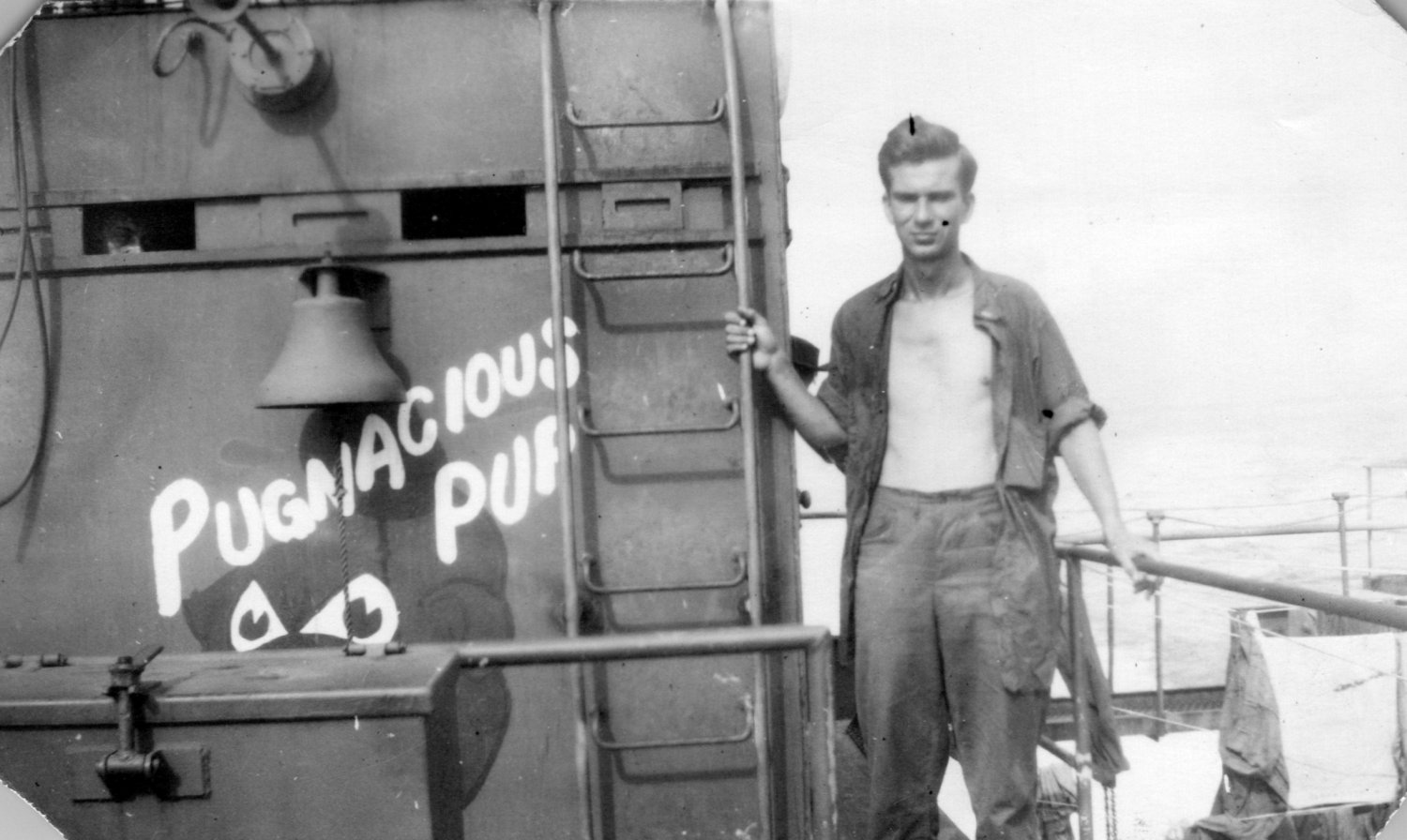 169k | LCT(6)-743 "Pugnacious Pup", her logo, painted on the conning tower, unknown crew member, date and location unknown. | Jacob Lipiew | |