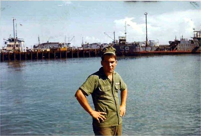 66k | In the background YFU-59 is moored in the Small Craft Repair Facility, Da Nang, South Vietnam, 13 November 1969. Gary Mcintosh on his 20th birthday. | Gary Mcintosh | |