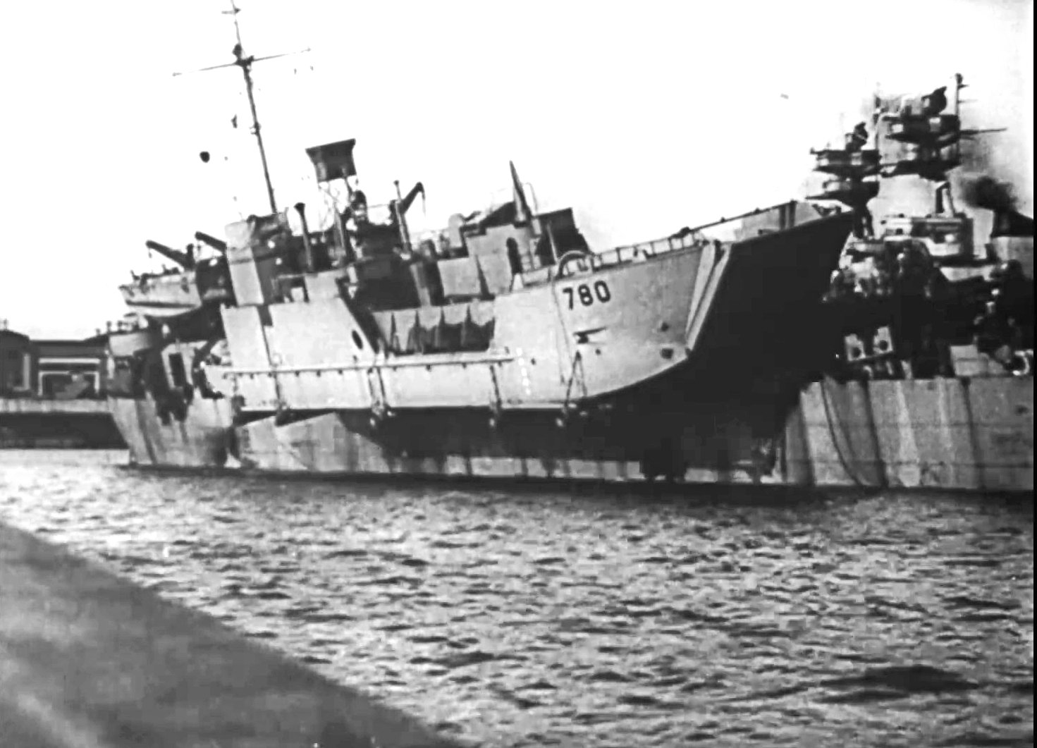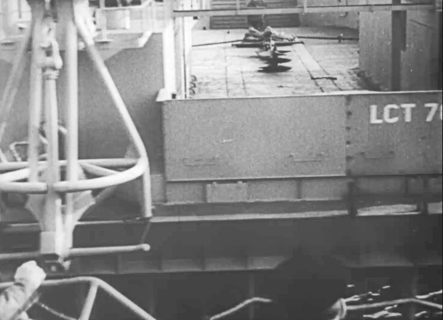 186k | LCT(6)-780 being launched from USS LST-137 at a shipyard in the Port