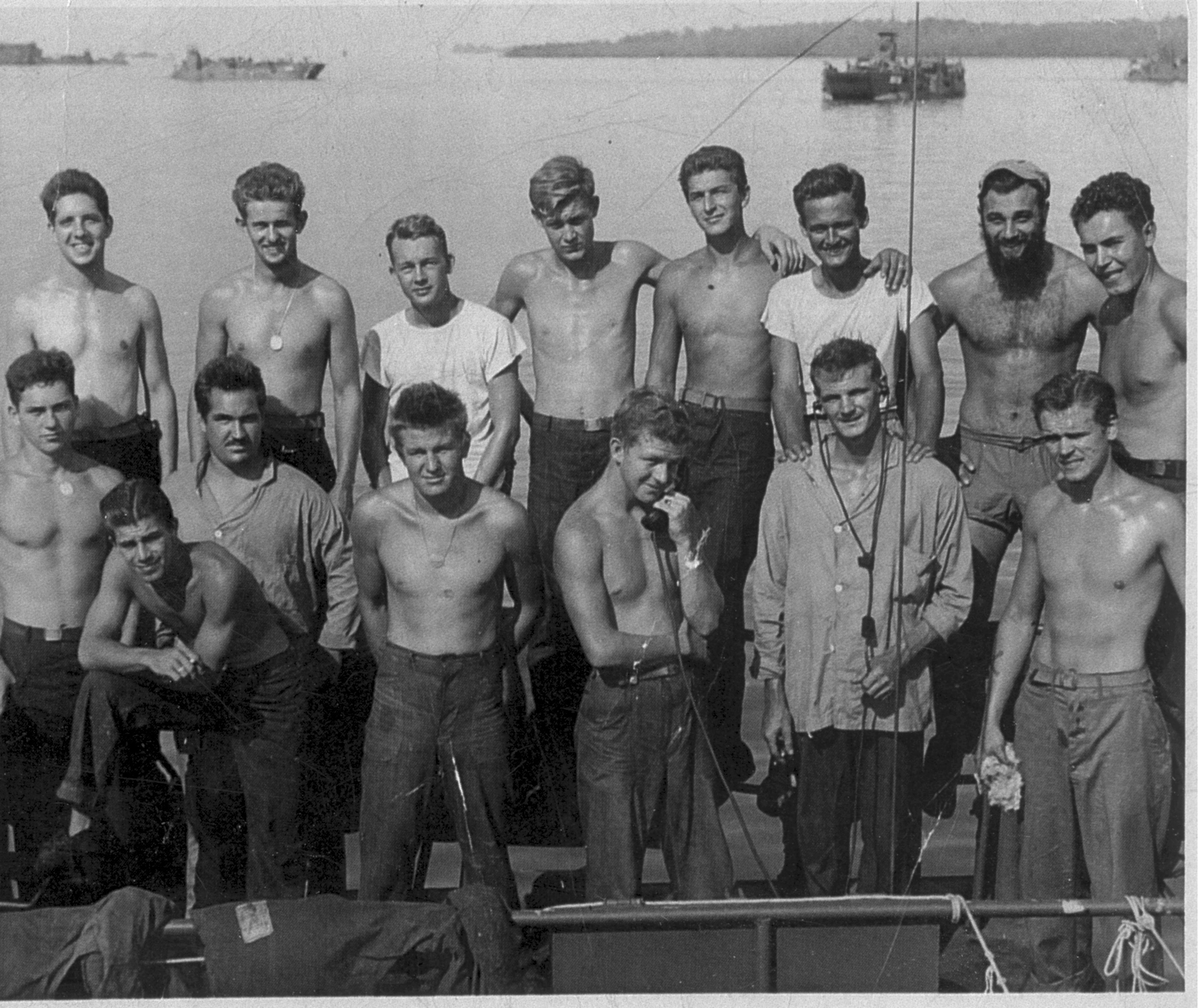 1069k | Crew of LCT(6)-952, probably in New Guinea, late 1944. | Doug Harris for his father LTjg. John Harris XO LCT-952 | |