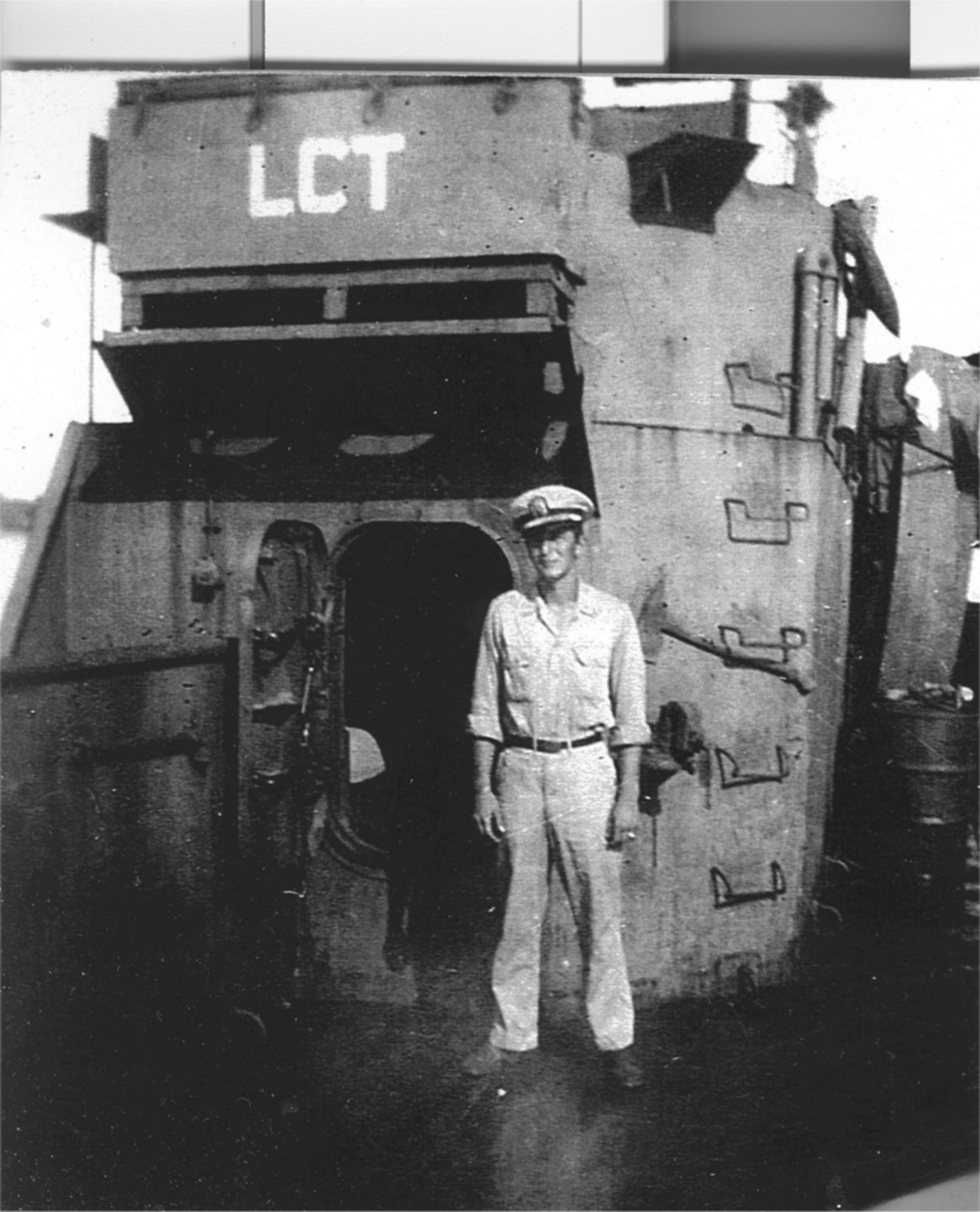 233k | LT. James D. Young Officer-in-Charge (Skipper) of LCT(6)-952, date and location unknown. | Doug Harris for his father LTjg. John Harris XO LCT-952 | |
