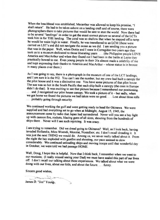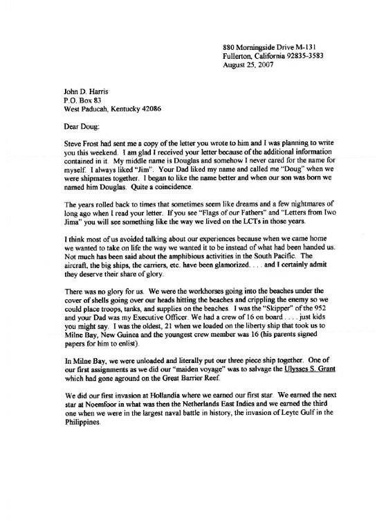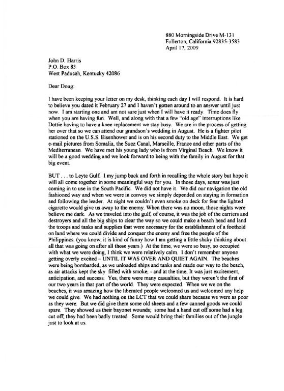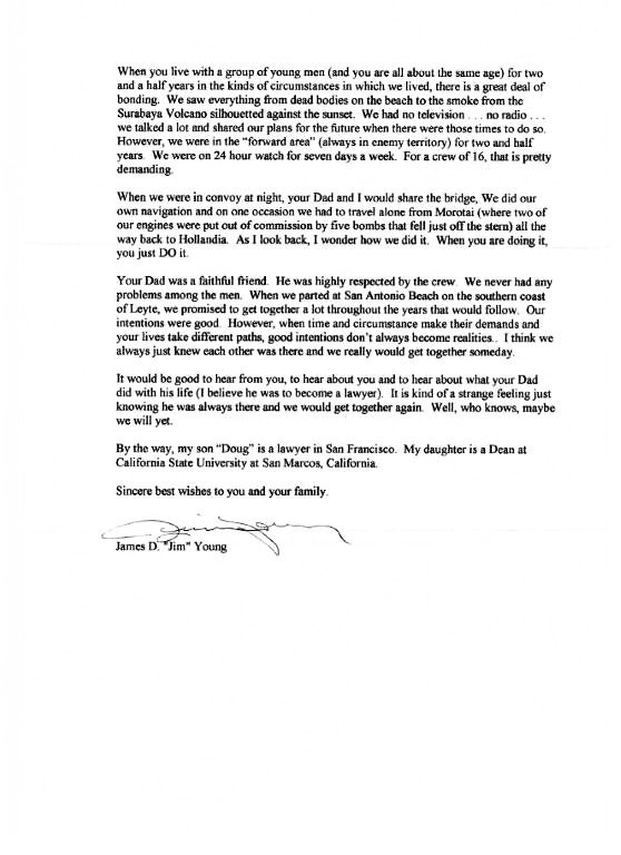 | Letters from LT. James D. Young to Doug Harris the son of LTjg John Harris. Contributed by Doug Harris |