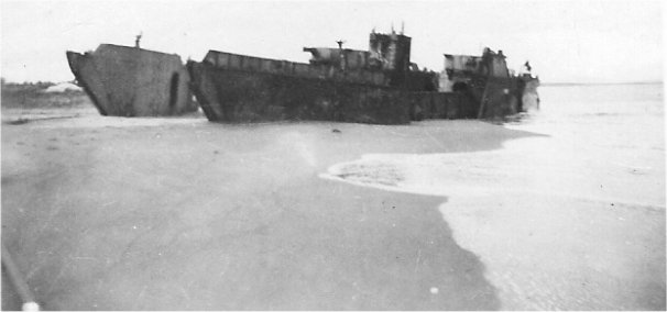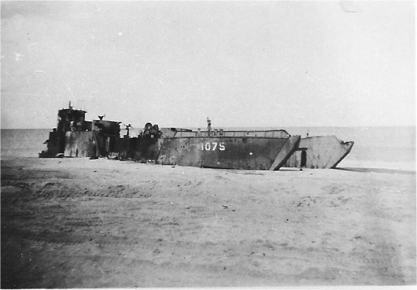 Hulk of LCT(6)-1075 washed up on the beach at San Pedro Bay, P.I., circa 1946 |
