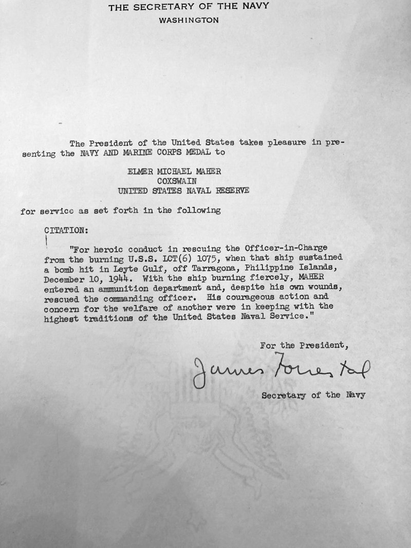 Navy and Marine Corps Medal (Coxswain Elmer M. Maher USNR) -