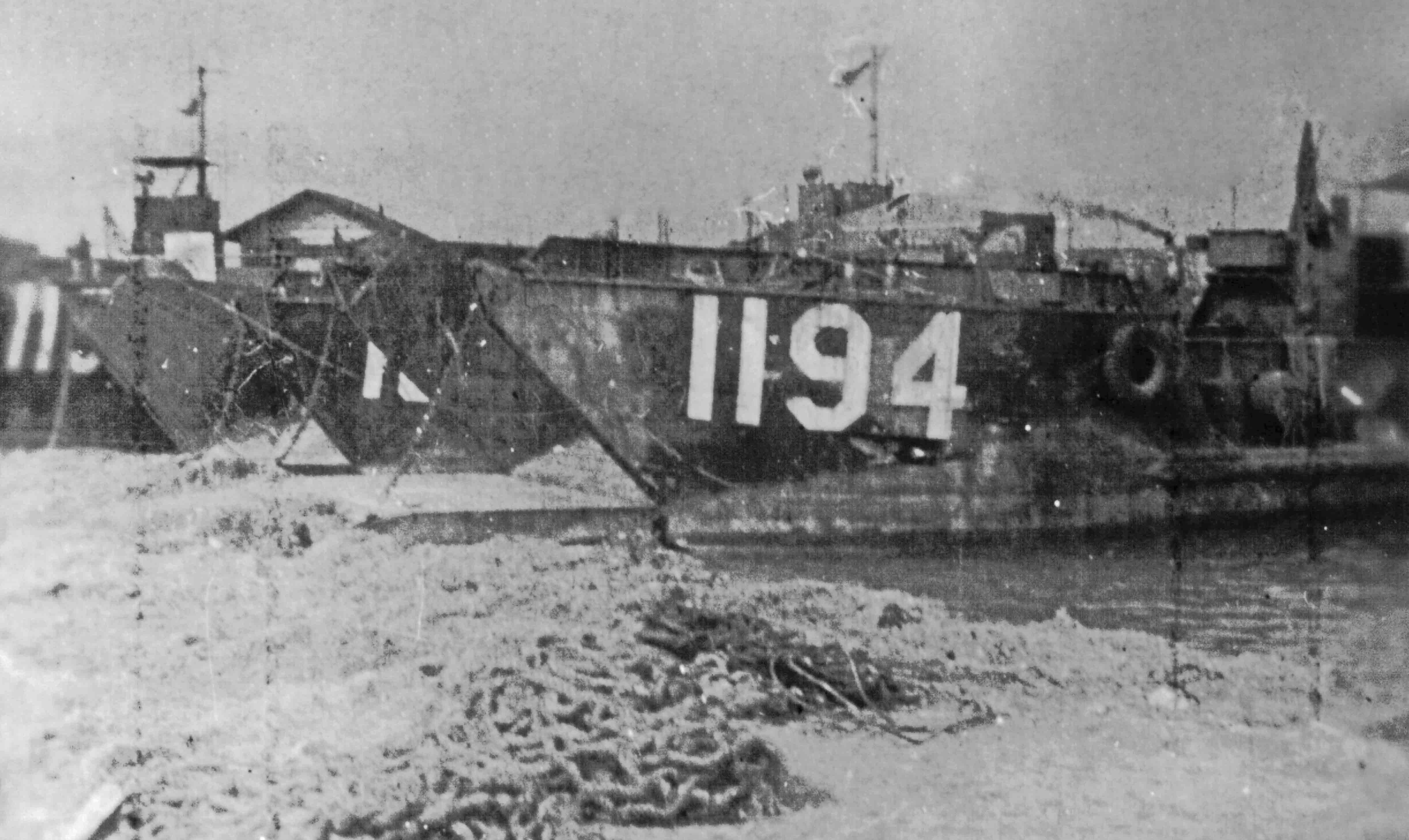 656k | LCT-1194 beached at Okinawa in 1945. Photo by Donald Berton Dale RM3/c LCT-1195 |