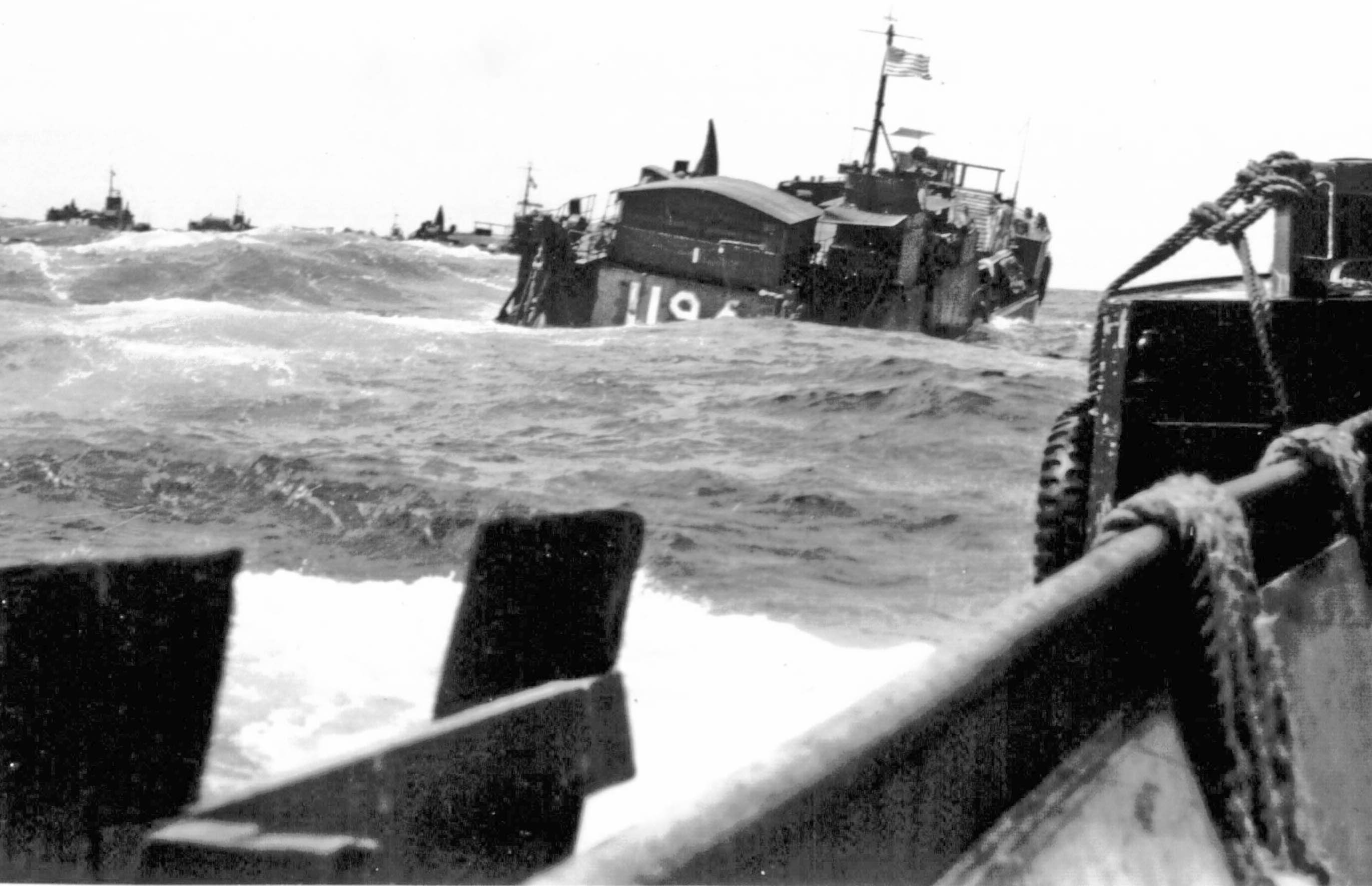 629k | LCT-1194 and LCT-1193 along with the rest of LCT Flotilla 31 underway enroute to Honshu, Japan in 1945. Photo by Donald Berton Dale RM3/c LCT-1195 |