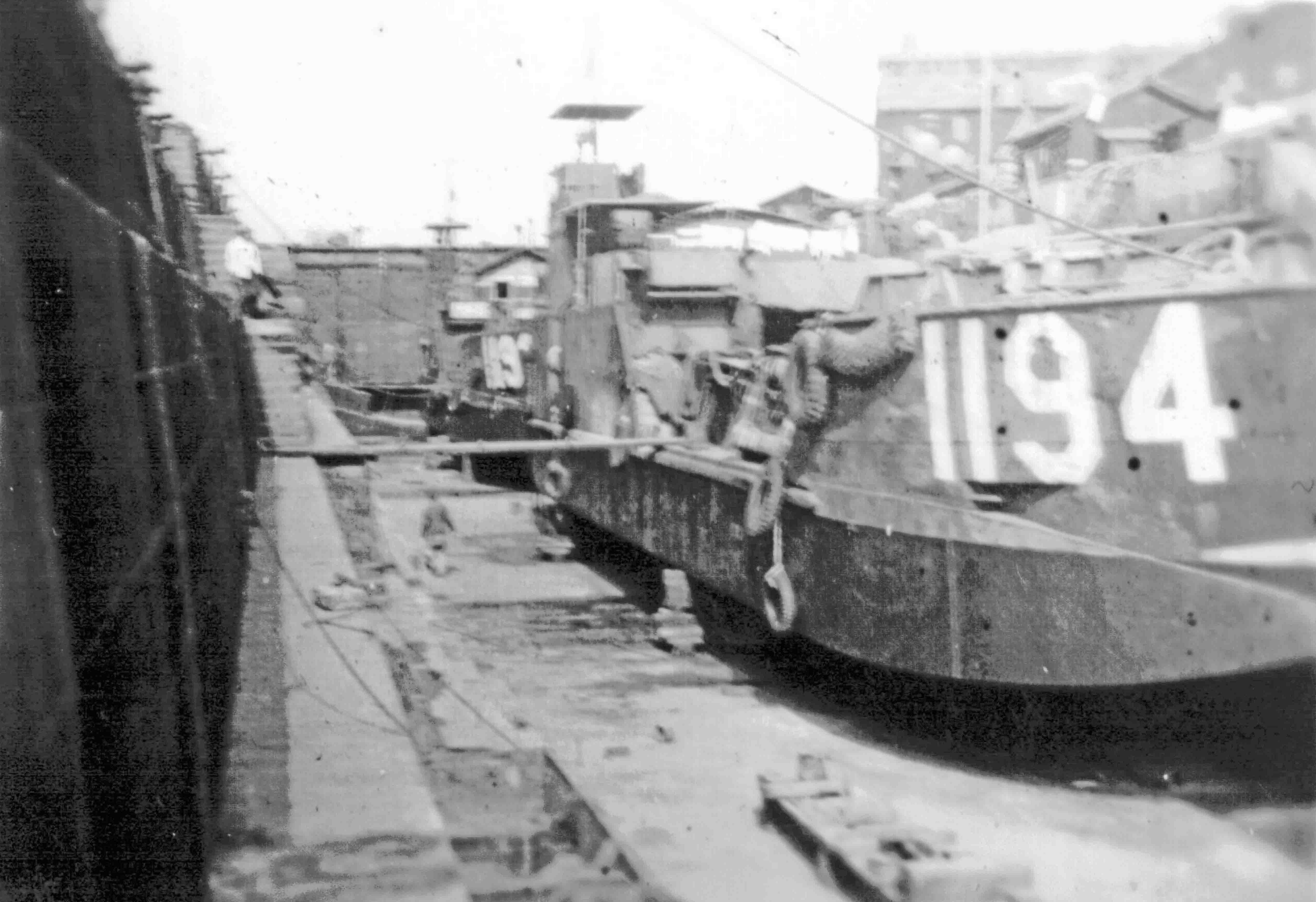855k | LCT-1194 drydocked in 1945, location unknown. Photo by Donald Berton Dale RM3/c LCT-1195 |