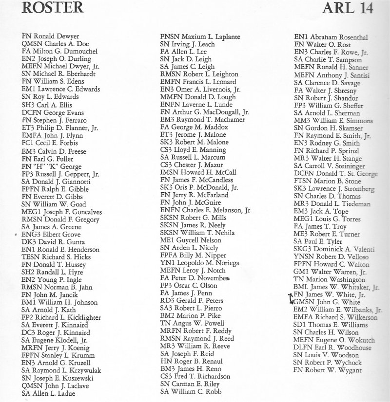 1953 Crew Roster Courtesy Jim White SKSN USS Minos