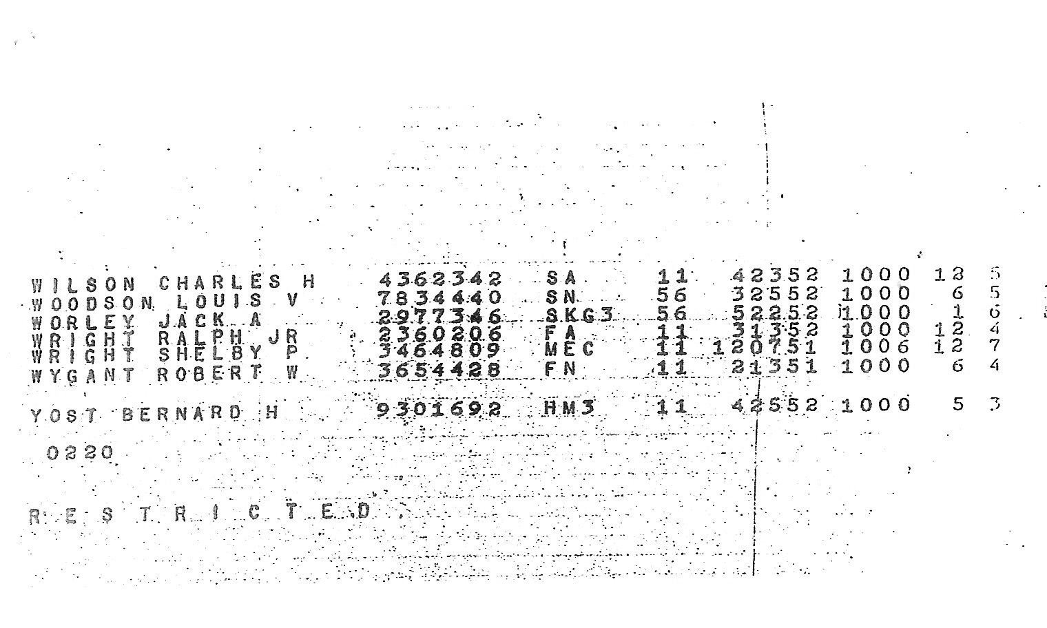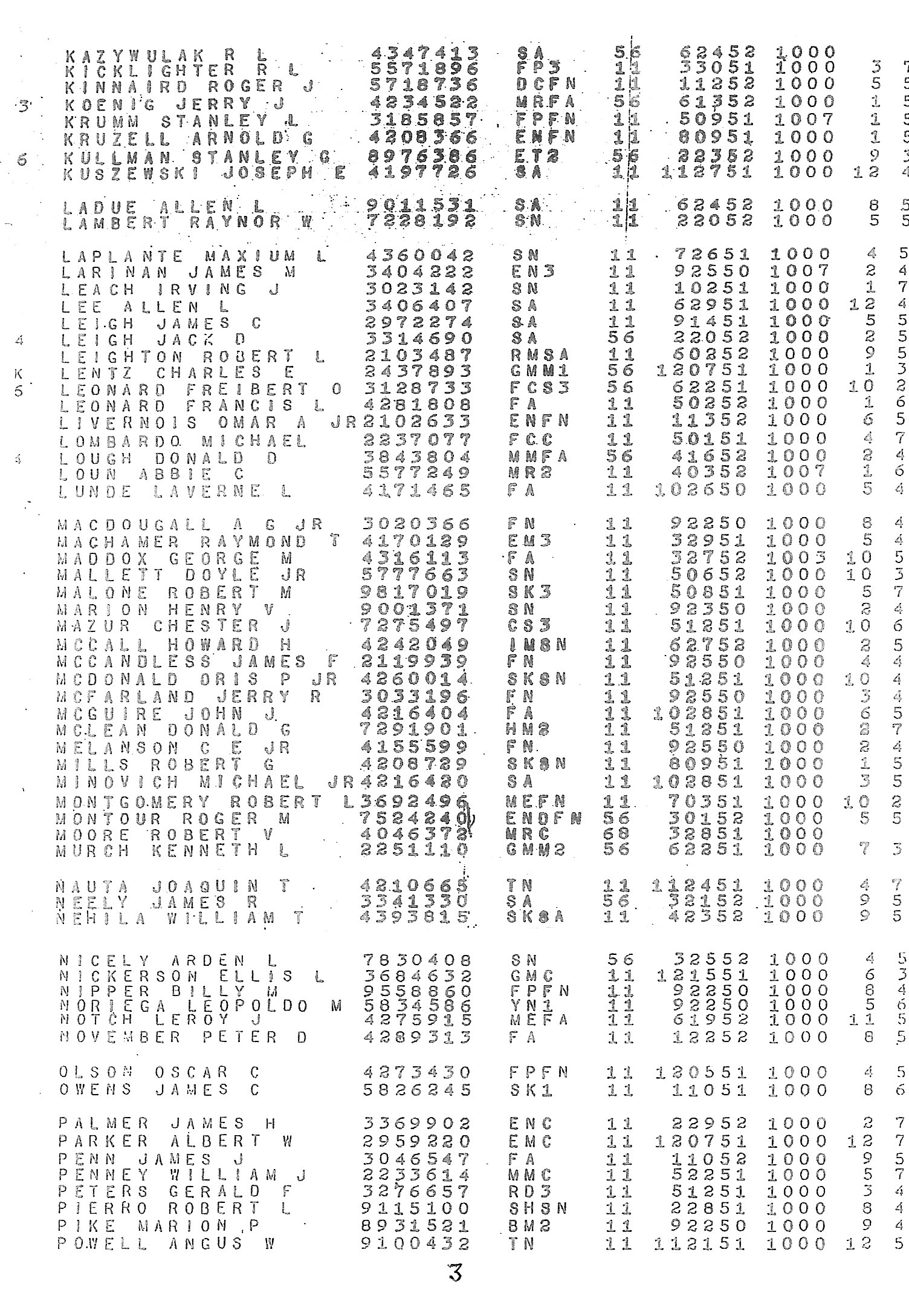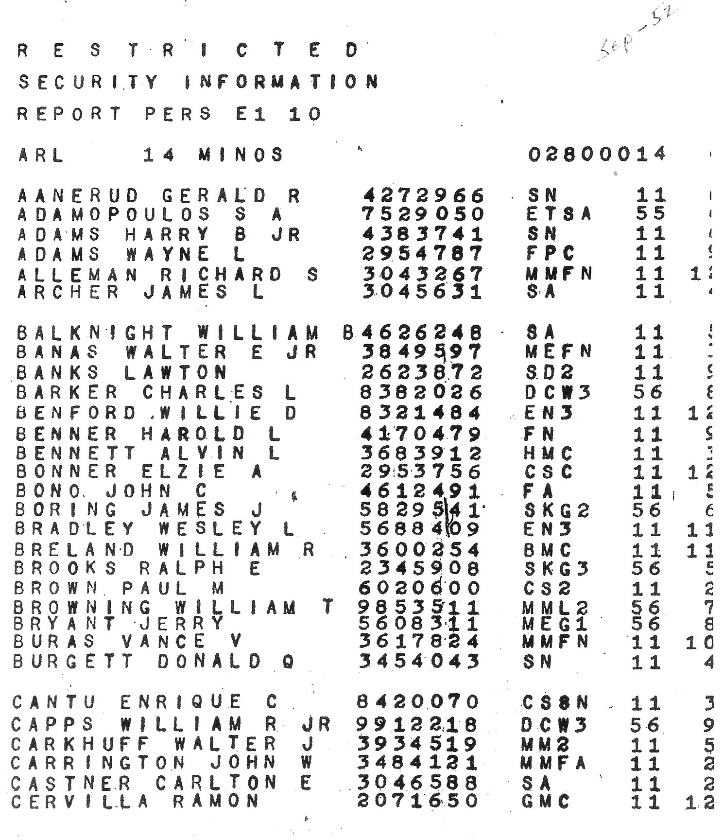 BUPERS Report E1 10, Enlisted Crew Roster, 1951-52, Courtesy Jim White SKSN USS Minos