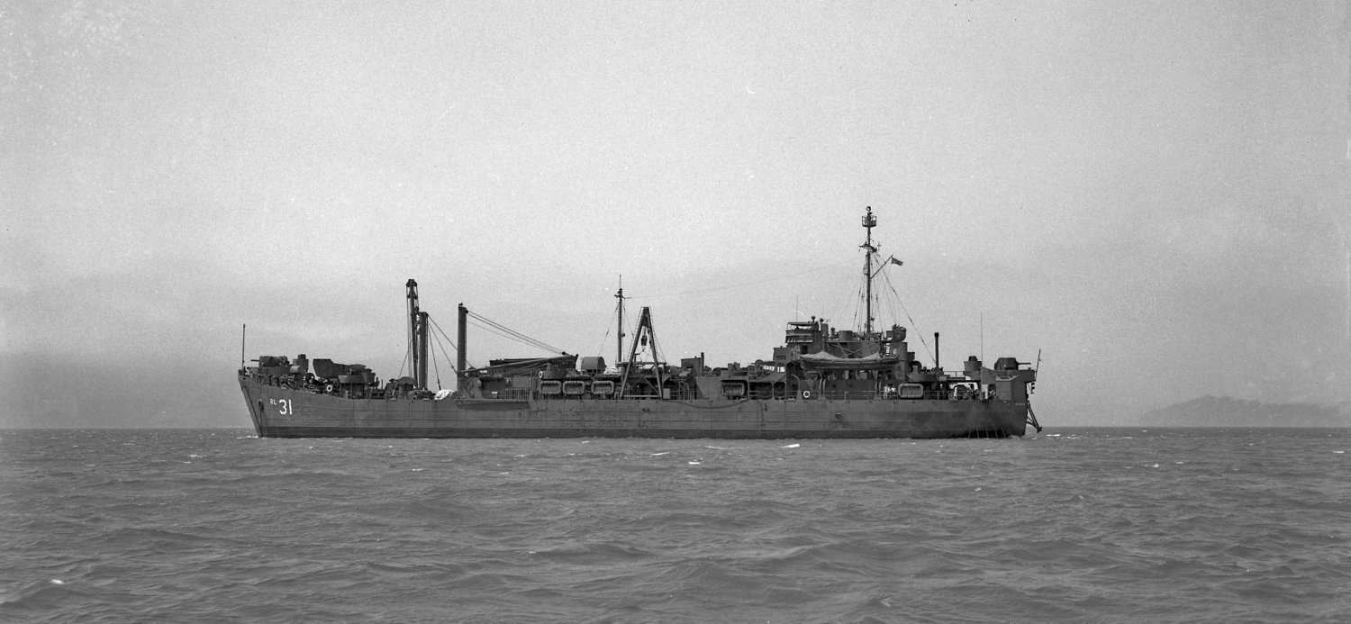 80k | USS Bellerophon (ARL-31) underway, date and location unknown. | Rob Wade, courtesy Sid Hisel SM3/c USS Bellerophon | |