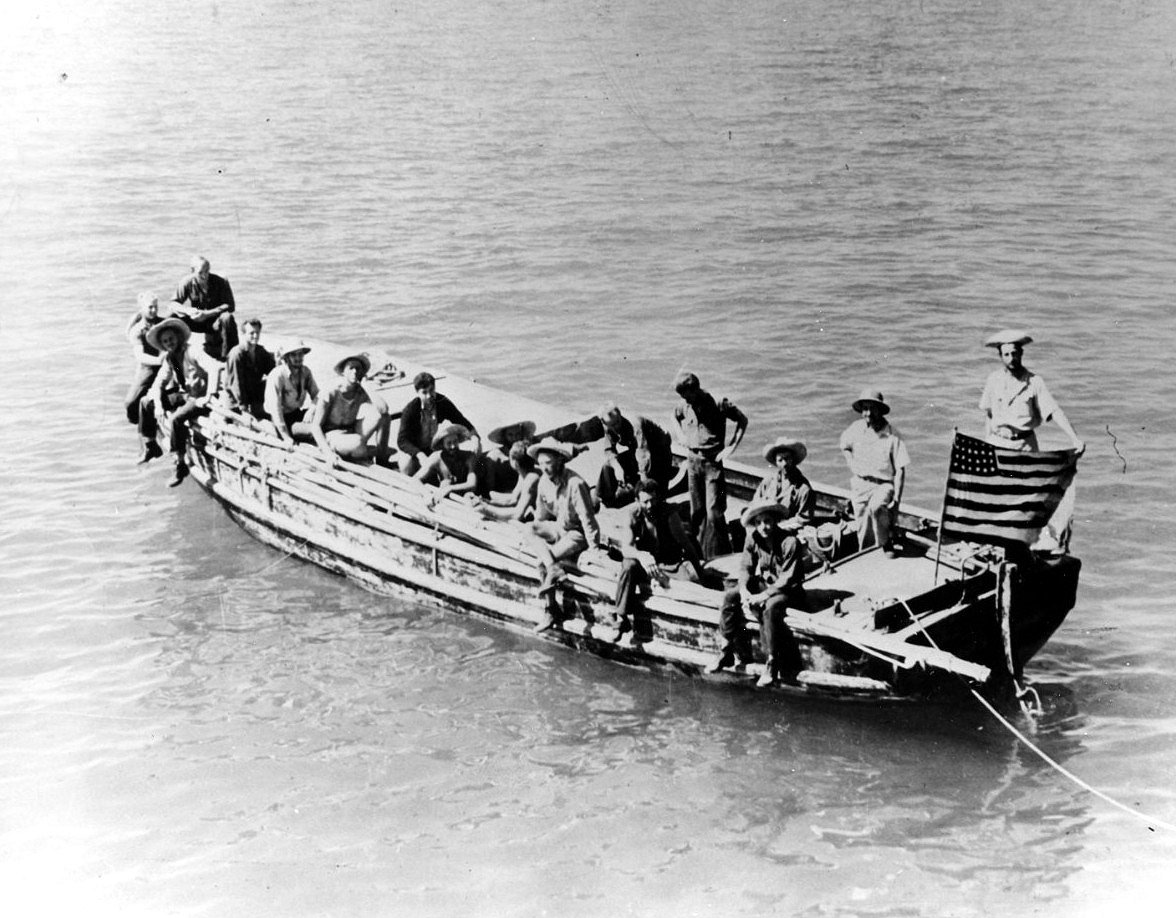 After Quail was gone, Morrill and his men took their boat, a 36-foot naval motor launch, and went to the deserted tug Ranger that was beached nearby on Caballo Island. Once there, Morrill decided that he was not going to surrender to the Japanese and that he and his men were going to escape. They searched Ranger for clothes, guns, ammunition and, most important, diesel fuel for their motor launch. They found about 450 gallons of diesel fuel on board the beached tug and stowed it in their boat. That night, Morrill went to Fort Hughes and asked the surviving members of Quail’s crew if they wanted to join him on his journey. He had a pocket watch, some diesel fuel, a few small-scale charts of the Philippines and the Netherlands East Indies, and a little food and water. He proposed that they board the 36-foot motor launch and try to make it to Australia. Some of the crewmembers were just too exhausted to even contemplate such a journey, but 17 men decided to join Morrill and take their chances with the sea rather than surrender to the Japanese.