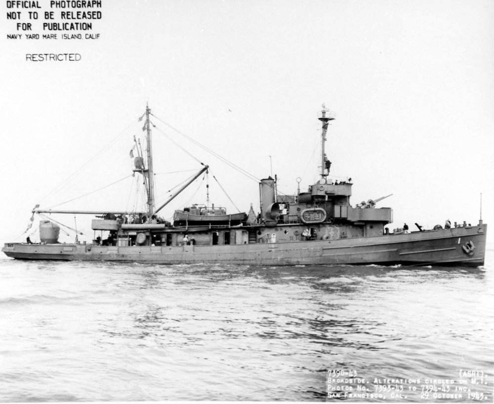 110k | 29 October 1943 Broadside view of Widgeon off Mare Island Navy Yard Mare Island Navy Yard photo 7390-43 |