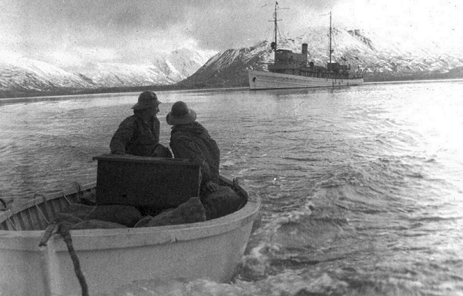 108k | c. 1940 Old Woman's Bay, Kodiak Island, Alaska Survey crew heading out from Discoverer Photo theb0084 from NOAA's Fleet Then and Now - Sailing for Science Collection |