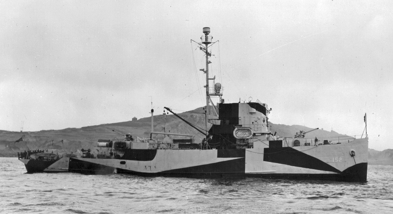 139k | Wearing camouflage 32/21D in June 1944 Photos BS 83800 and BS 83801 from the National Archives Bureau of Ships collection |