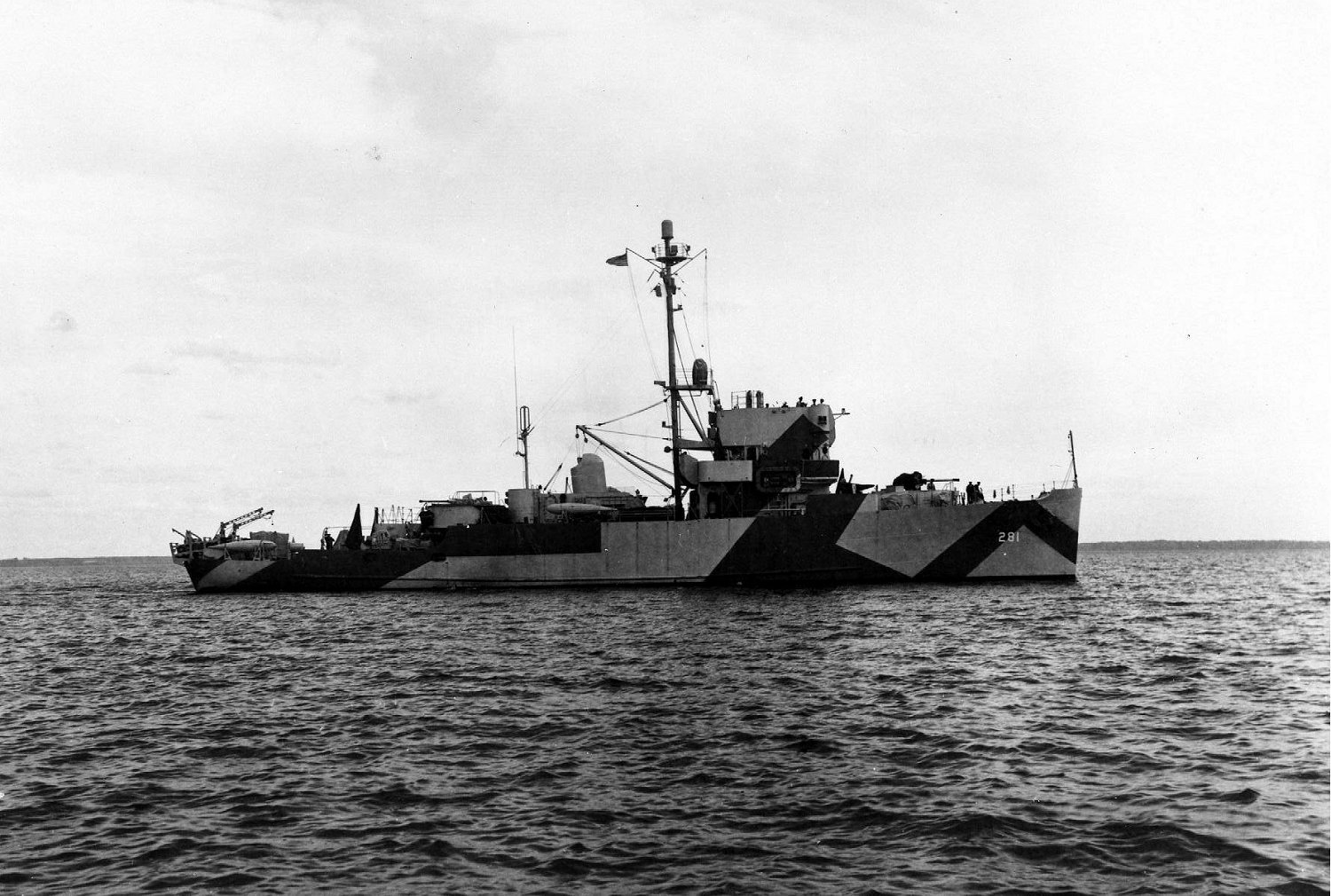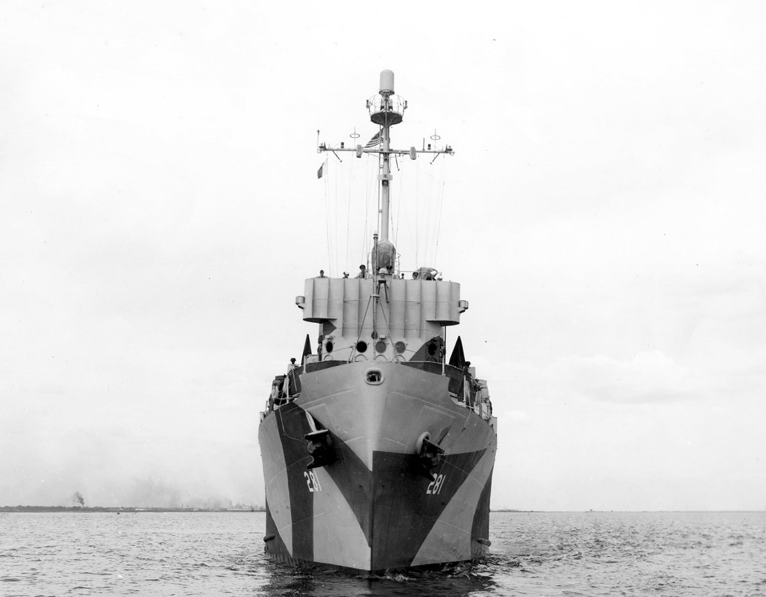 89k | Wearing camouflage 32/23D reversed port and starboard in Mobile Bay, AL on 2 November 1944 National Archives photo BS 74053 from the Bureau of Ships collection |