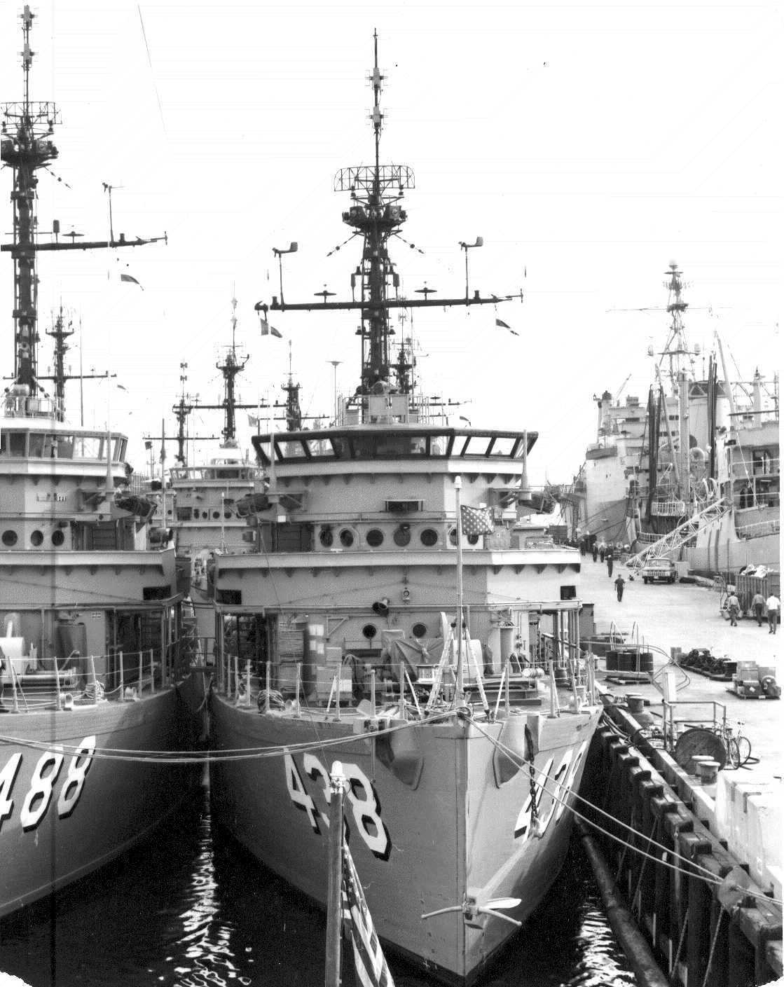 130k | c. 1978 Pier 90, Seattle, WA Esteem, USS Conquest (MSO 488), USS Implicit (MSO 455), USS Higbee (DD 806), USS McKean (DD 784) and inboard of the DD's is USS Hector (AR 7) |